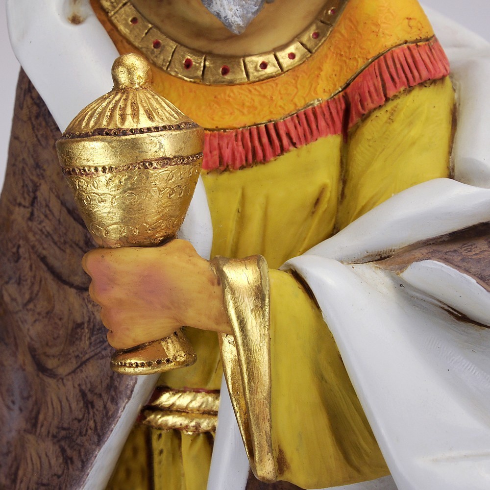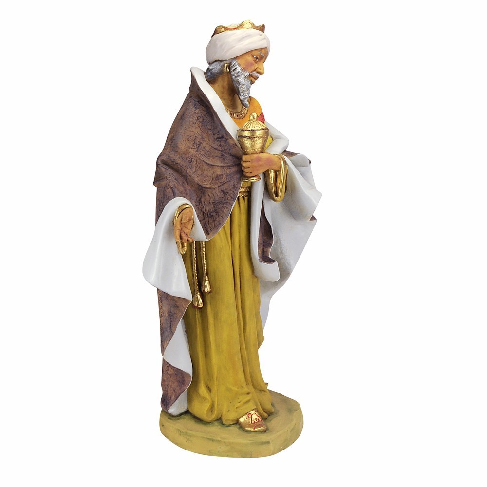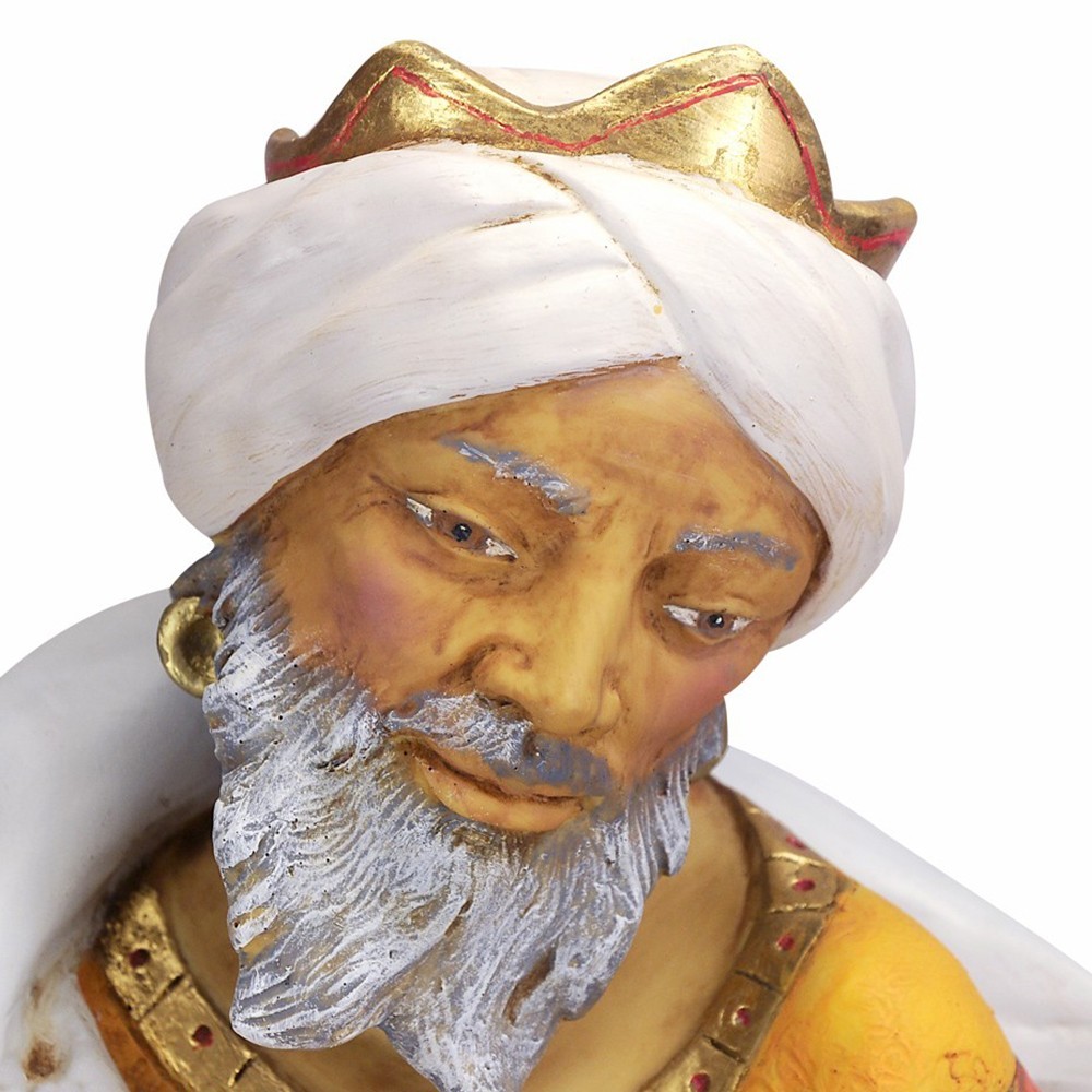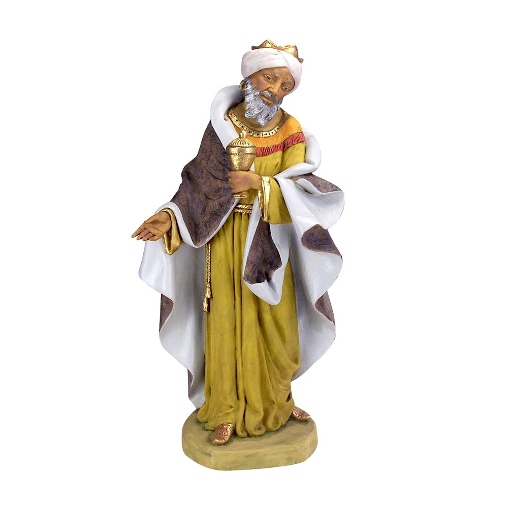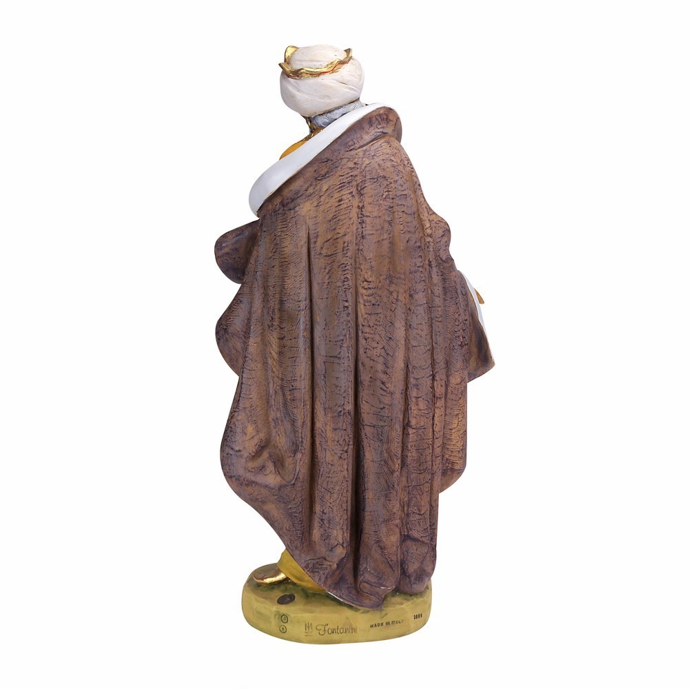 Statua Re Mulatto Baldassarre Fontanini. La statua è realizzata in resina adatta per presepe da 85 cm. Prodotta dall'azienda Fontanini, che produce da anni presepi e statue religiose di alta qualità, curando tutti i dettagli. Dipinta finemente a mano. Made in Italy.