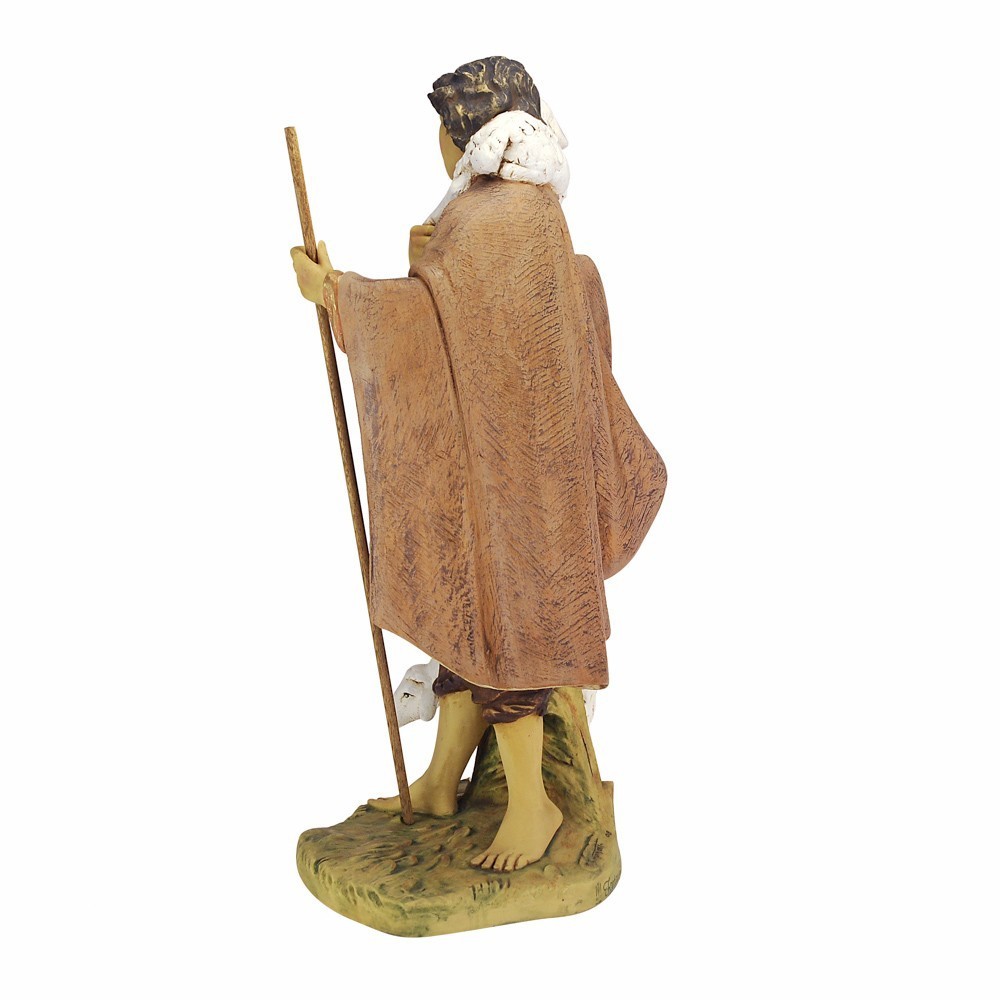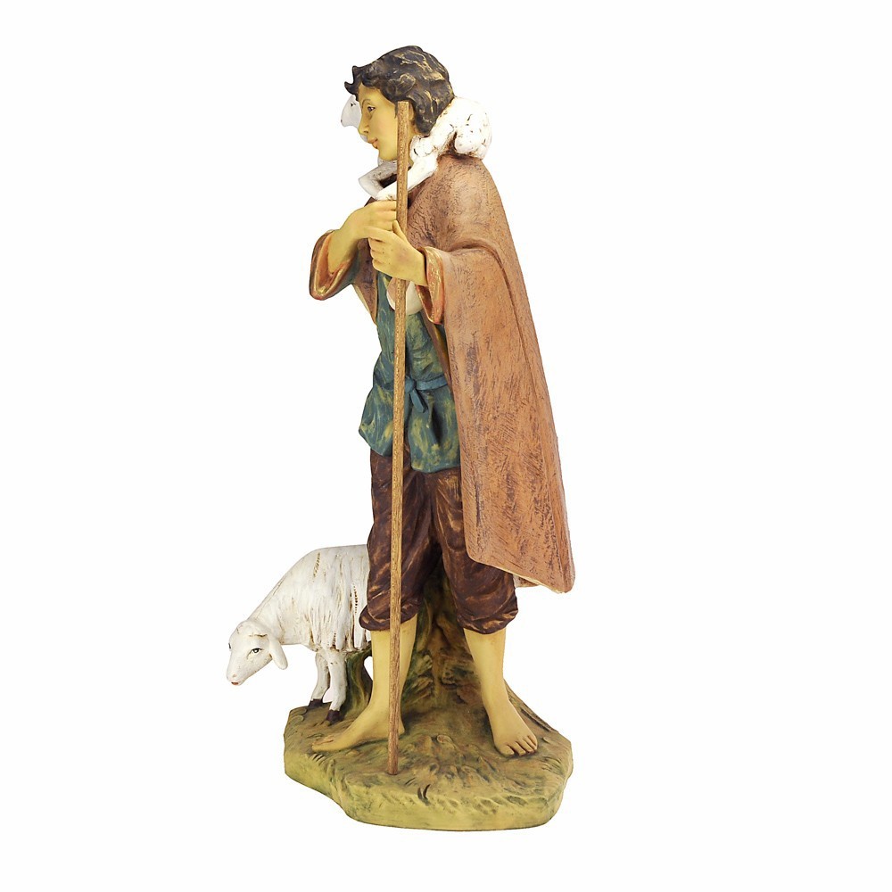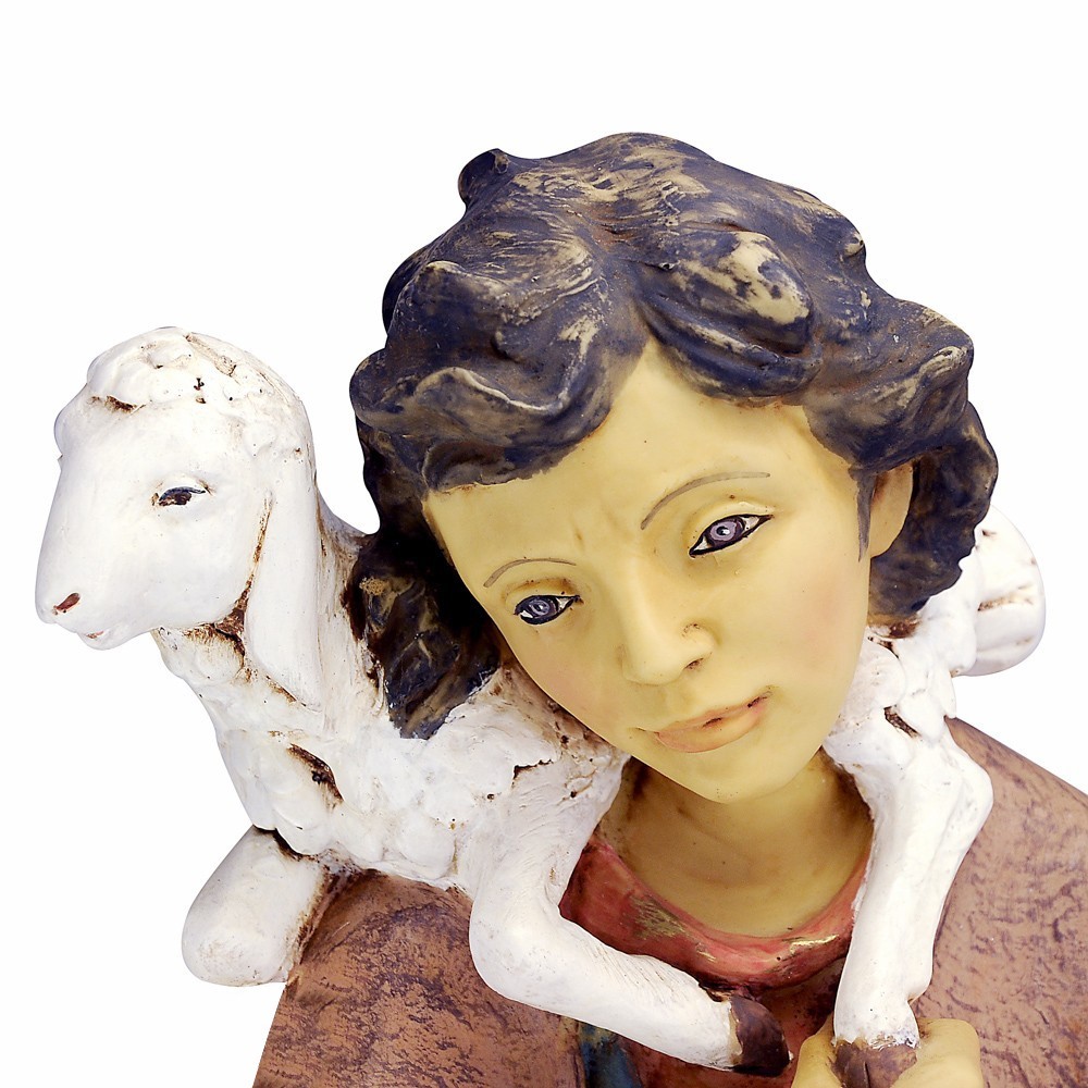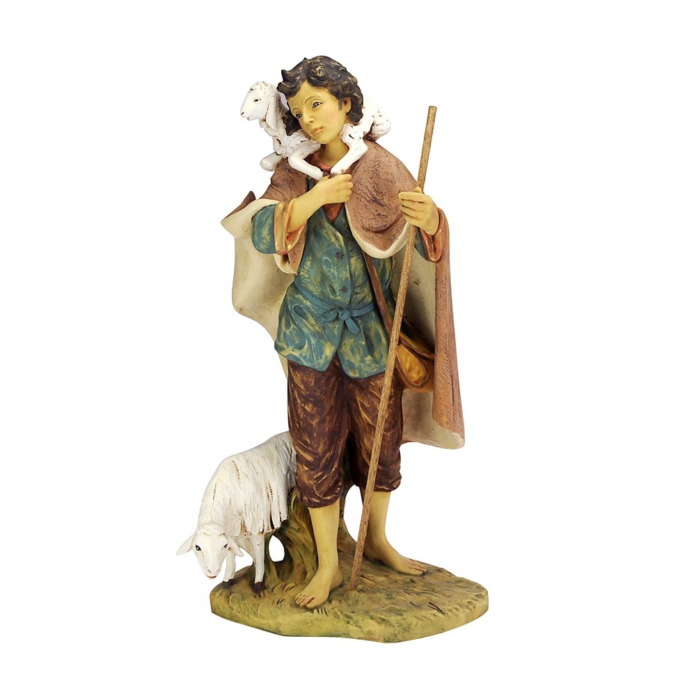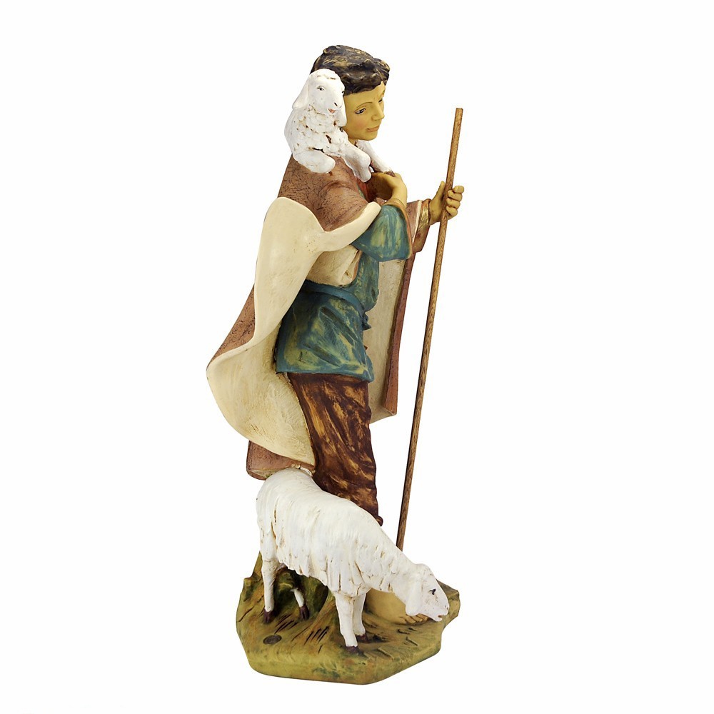 Statua pastorello Fontanini con agnello e pecora. La statua è adatta per presepe da 85 cm. Realizzato in PVC materiale infrangile e dipinta finemente a mano.