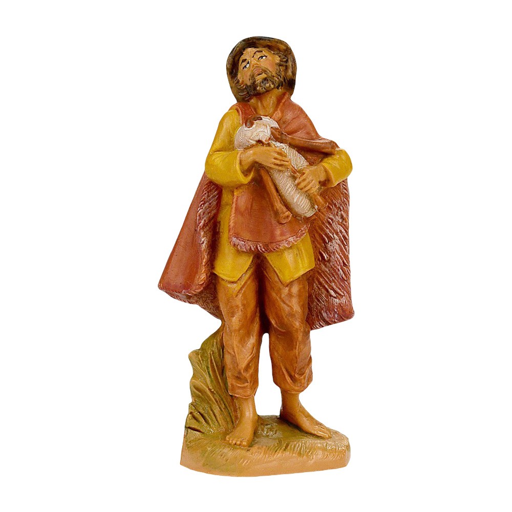 Pastorello con pecora in braccio proporzionata per il presepe Fontanini da 9,5 cm.