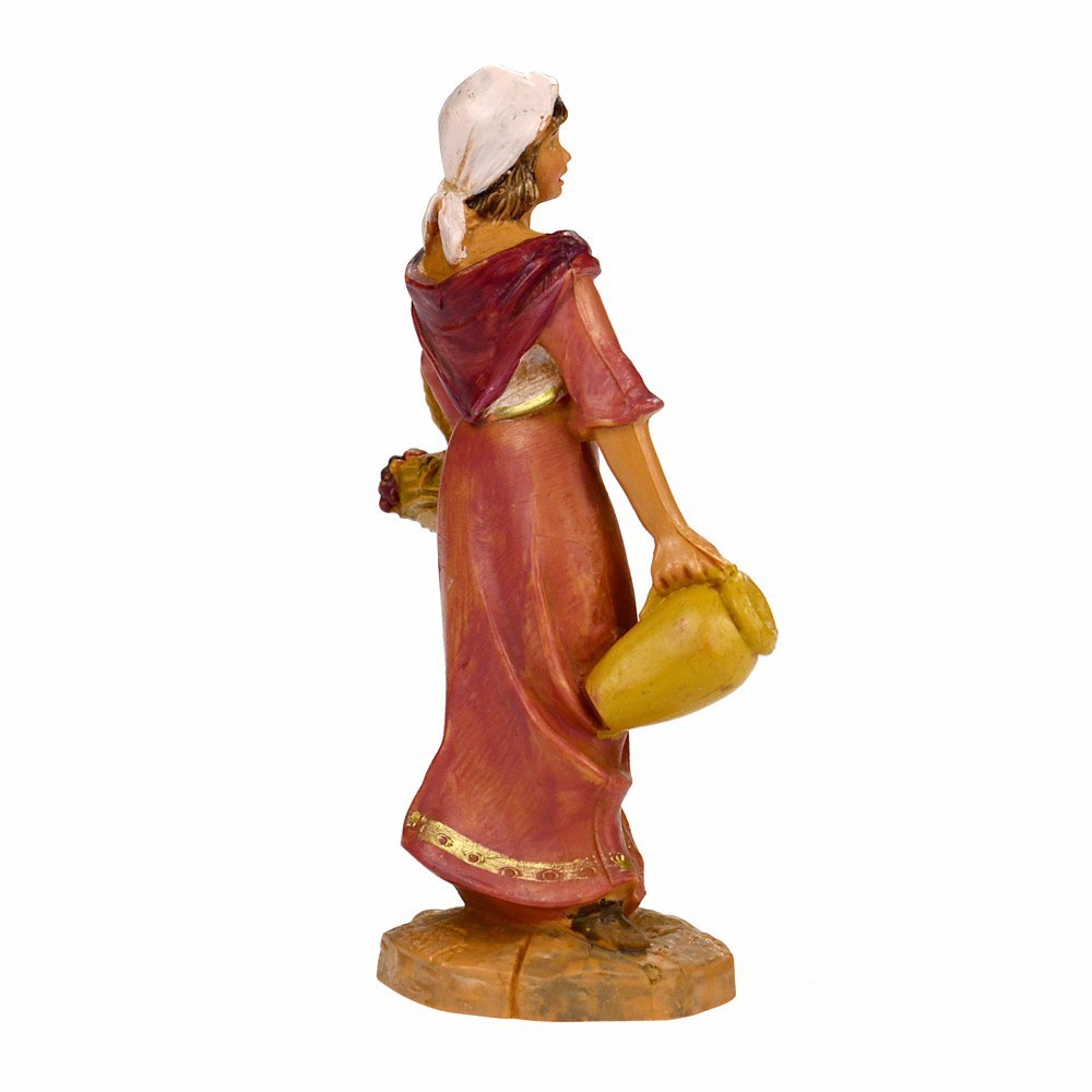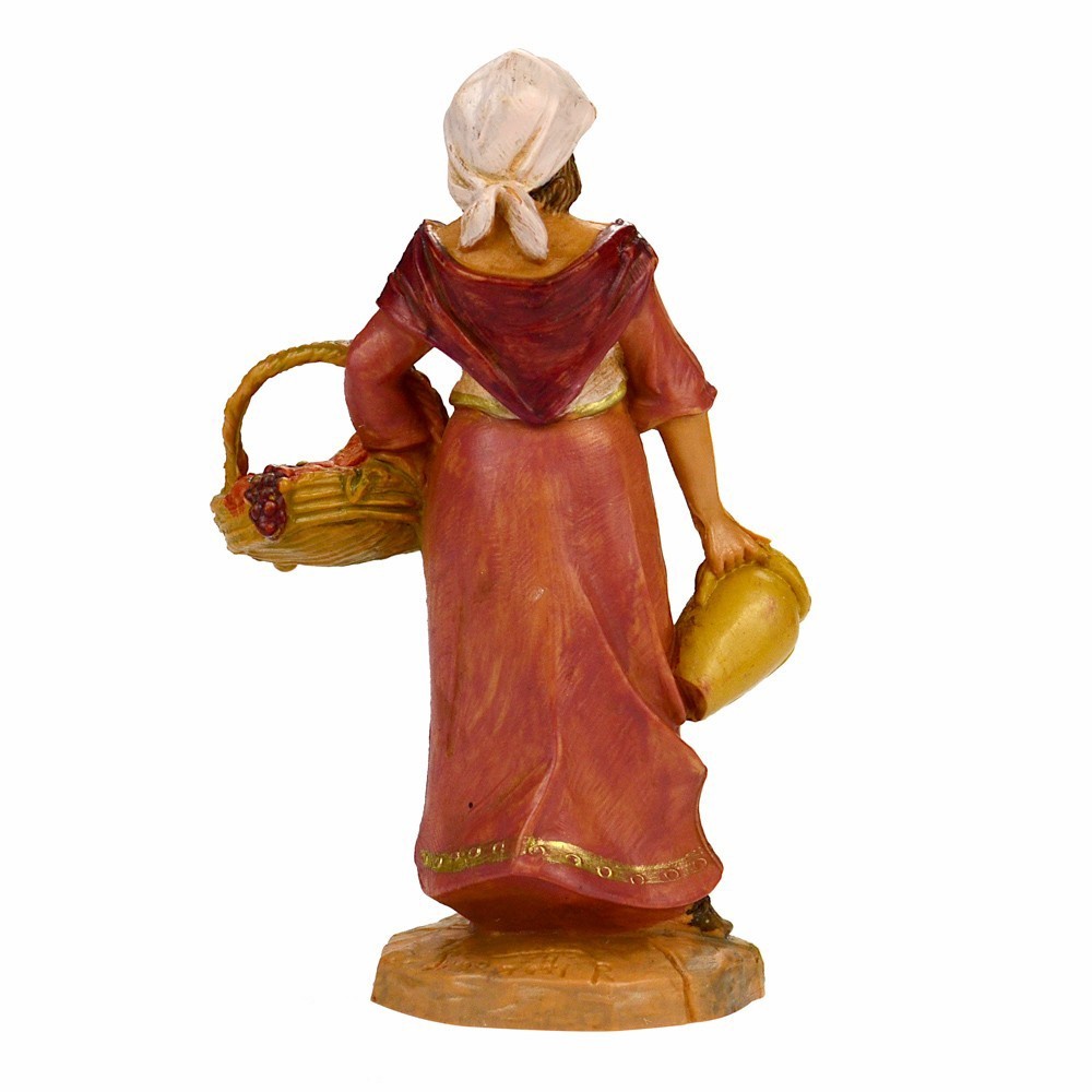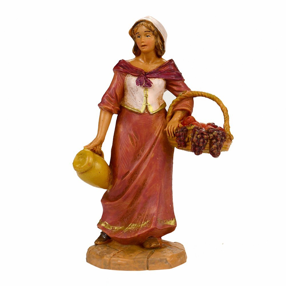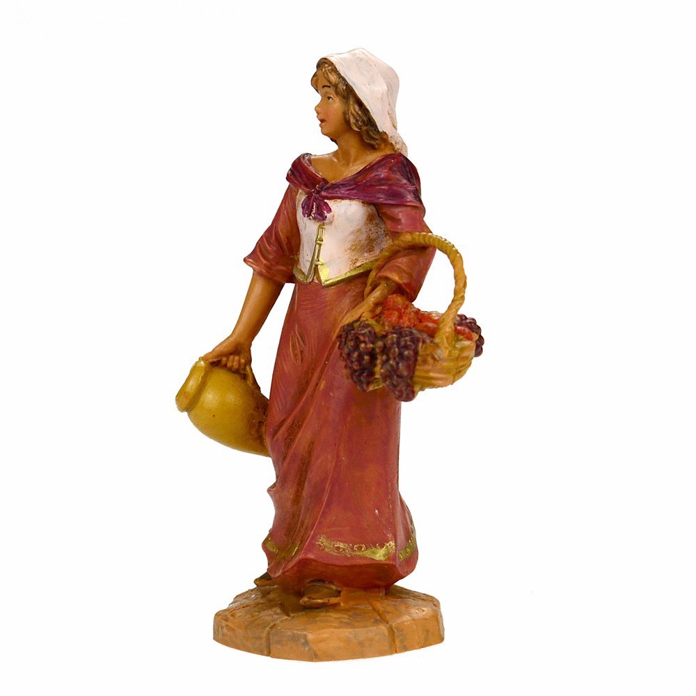 Pastorella con cesto di frutta e anfora adatta presepe Fontanini da cm 9,5.