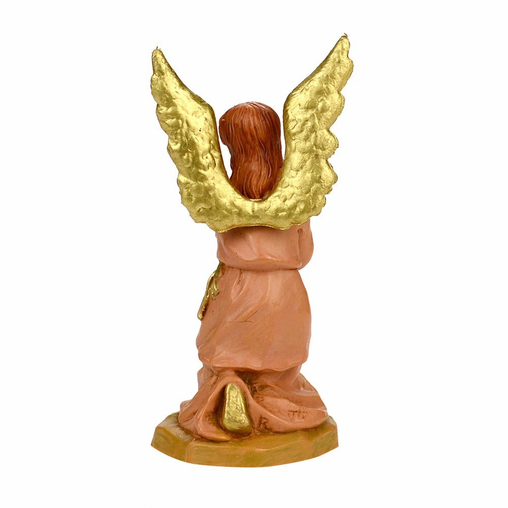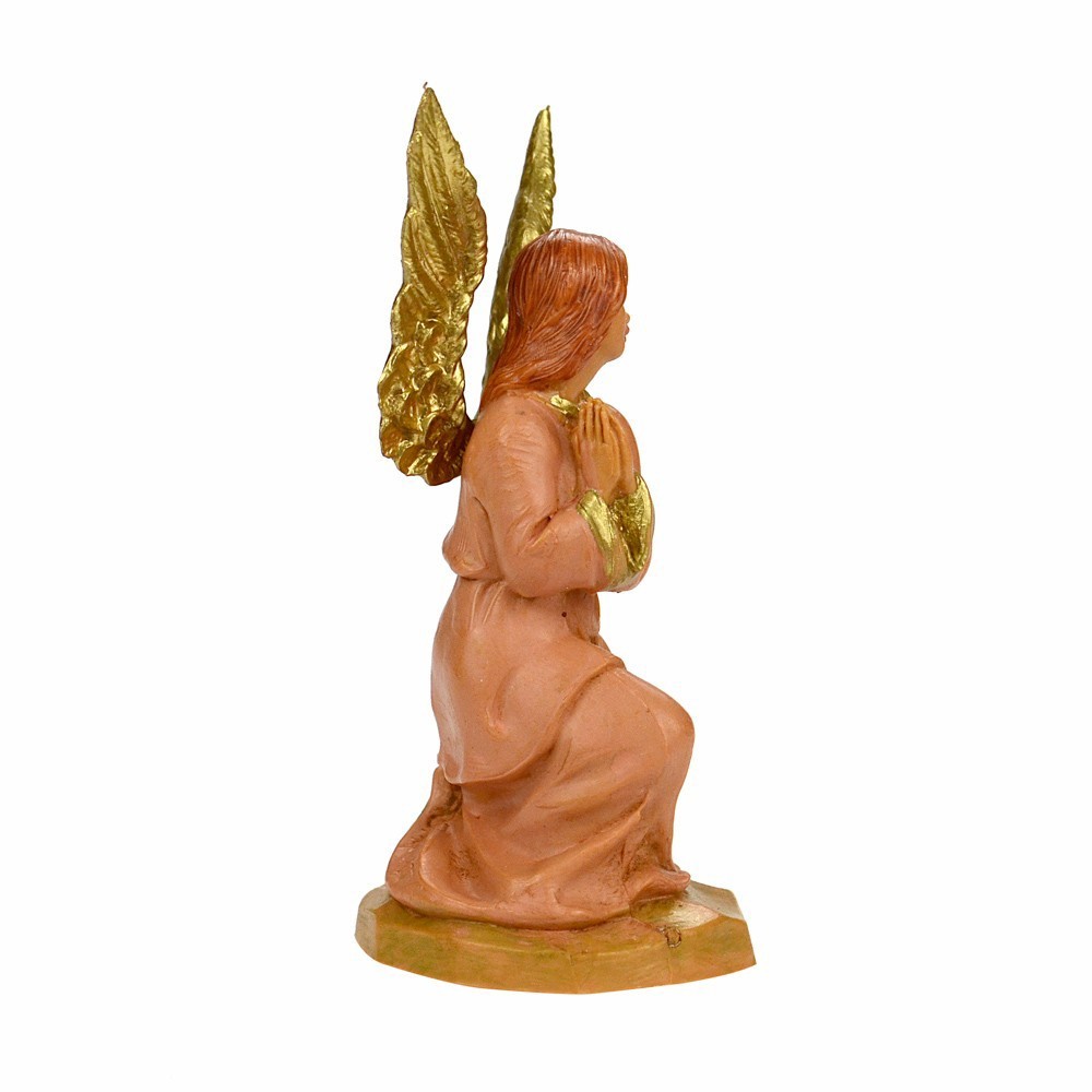 Angelo seduto, con veste di colore rosa e ali dorate. La statuetta è adatta per Presepe Fontanini da 9,5 cm.