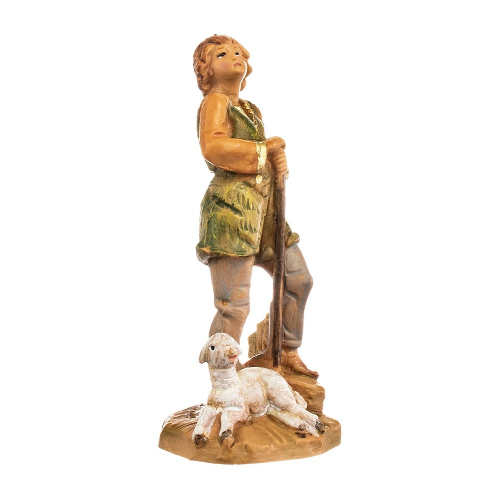 Pastore Fontanini con pecorella e bastone proporzionata per il presepe da 9,5 cm.