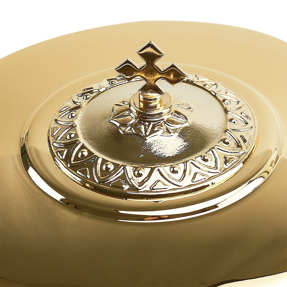 Pisside JHS in ottone bicolore, h 24,5 cm.