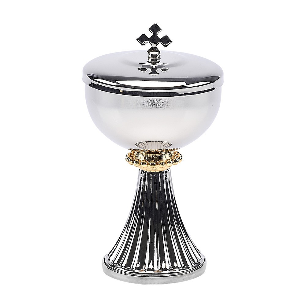 Pisside San Germano in ottone nichelato, con finitura oro all'interno della coppa. Base finemente lavorata.