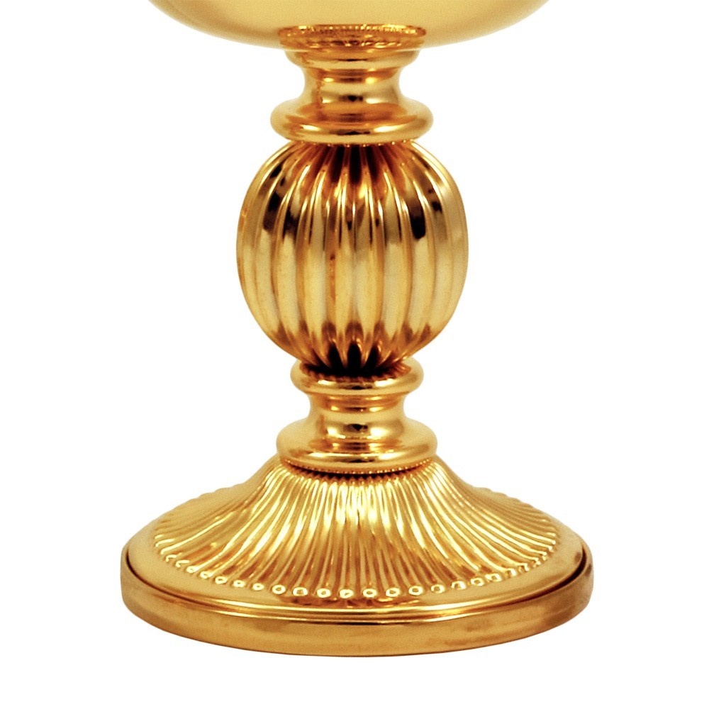 Calice in ottone dorato con base e coppa lucida, nodo rigato.