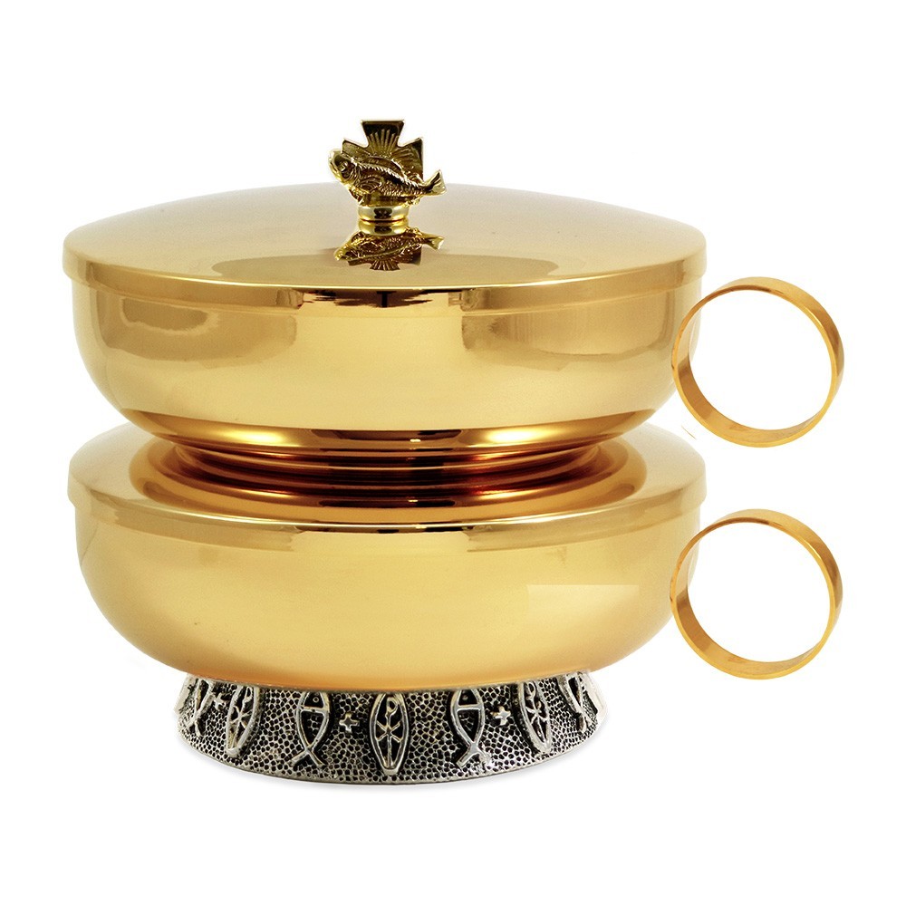Pisside liturgica per concelebrazioni a due piani.