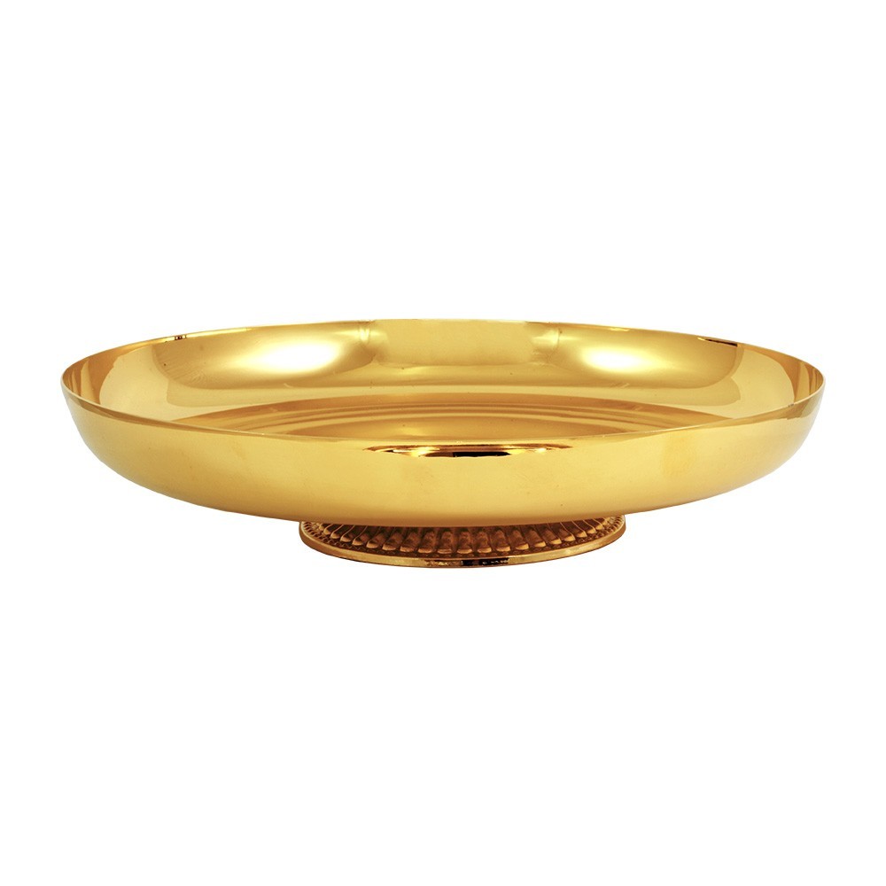 Pisside liturgica bassa in ottone dorato 24k con base in fusione e coperchio.