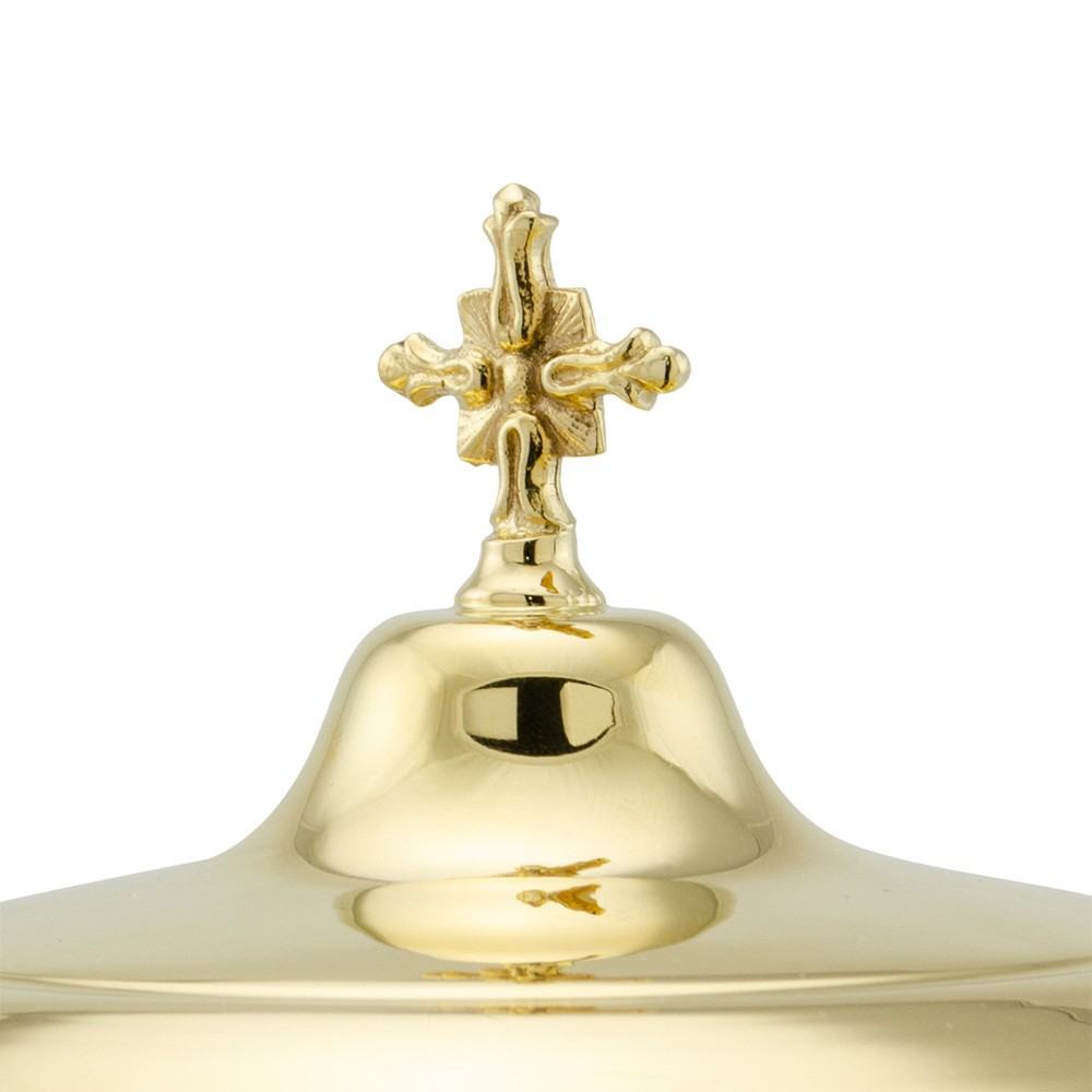 Pisside per le ostie in ottone dorato con nodo perlinato.