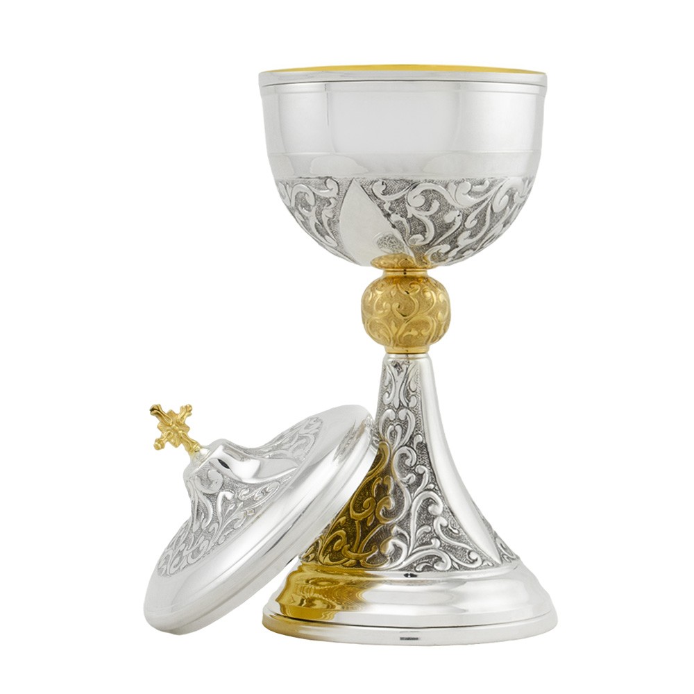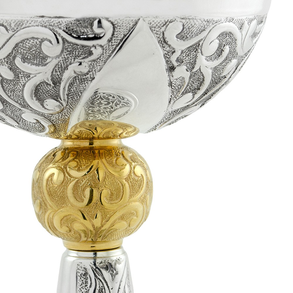 La pisside modello "Ercole" è prodotta completamente in argento 800 con coppa in bagno oro 24k.