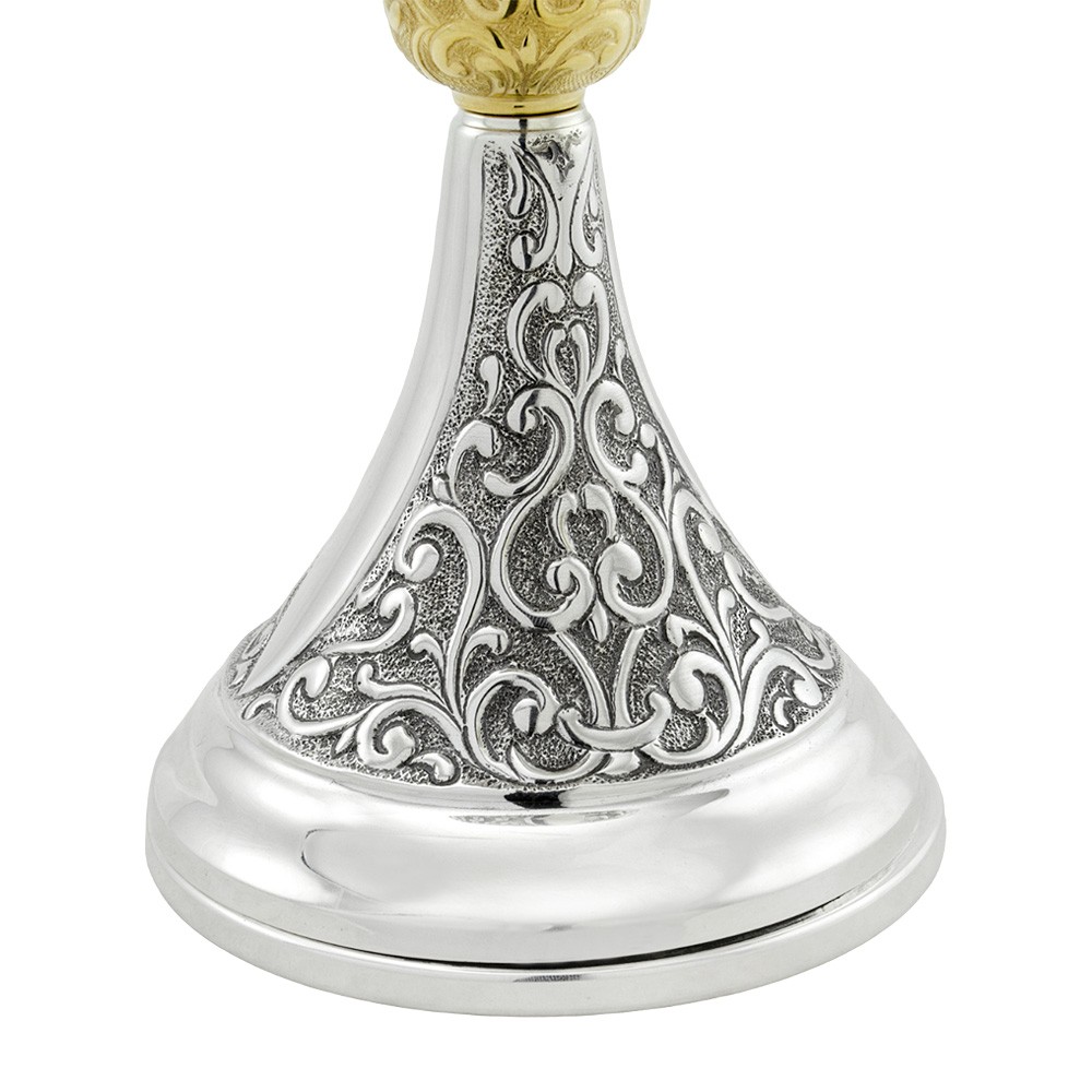 Consegna in 2 settimaneSet calice e pisside in ottone con base decorata.