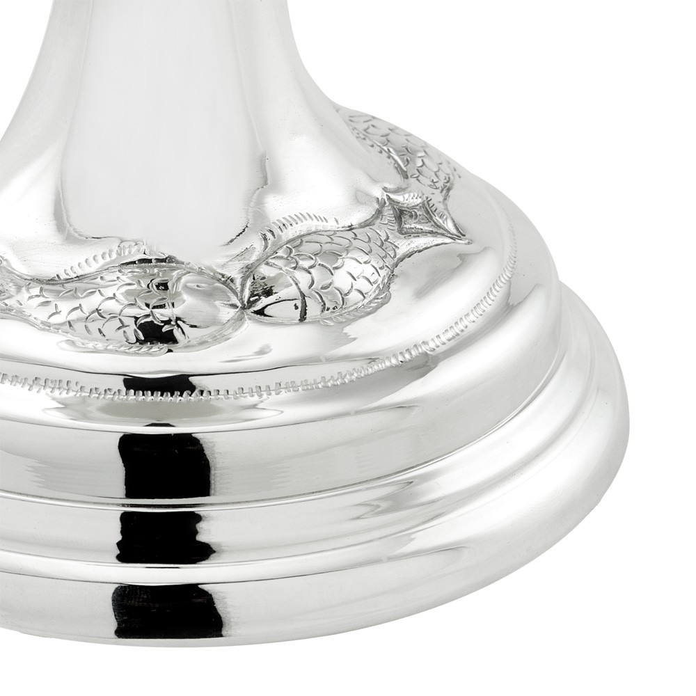 La pisside è alta 29 cm e il diametro della coppa è 12 cm. Peso 420 gr.
