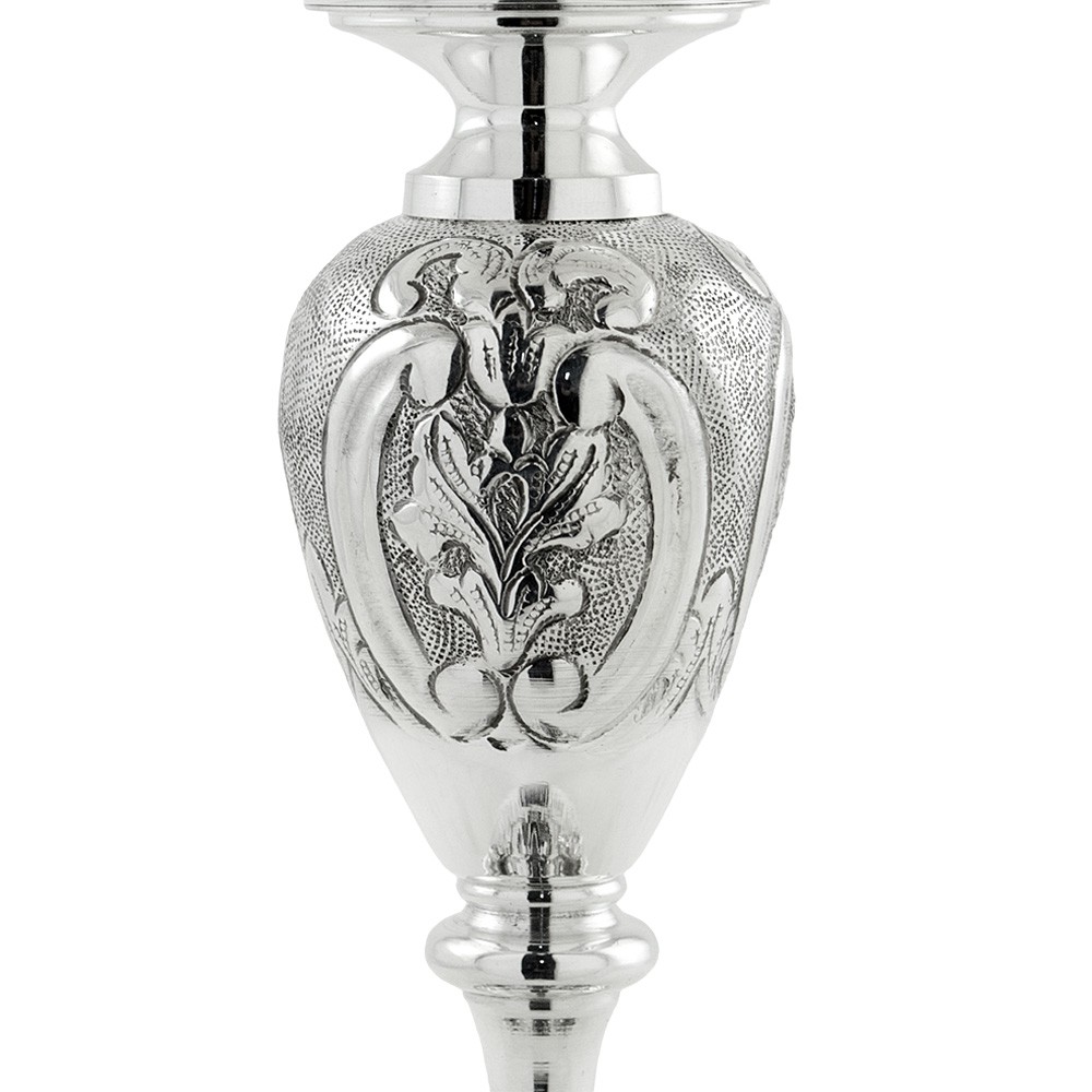 La pisside è alta 32 cm e il diametro della coppa è 12 cm. Peso 830 gr.
