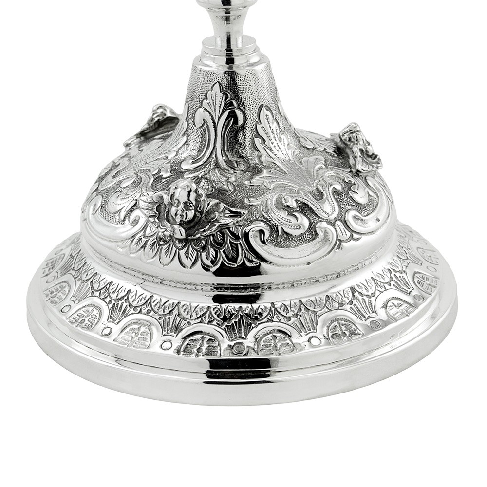 Le ricche decorazioni presenti sul coperchio, sulla coppa, sul nodo e sulla base sono il frutto del sapiente lavoro artigianale, garantendo e donando alla pisside eleganza e unicità al pezzo.