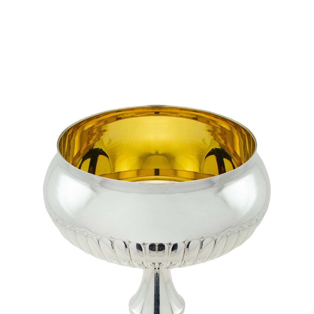 Consegna in 2 settimanePisside liturgica con base dorata e sottocoppa martellata color argento.