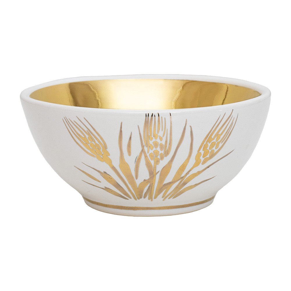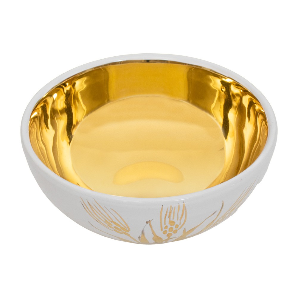 Pisside liturgica in ceramica con decoro spighe di grano.