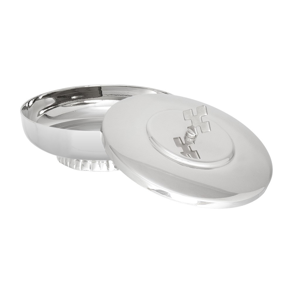 Realizzata in ottone finitura argento, diametro 9,5 cm circa.