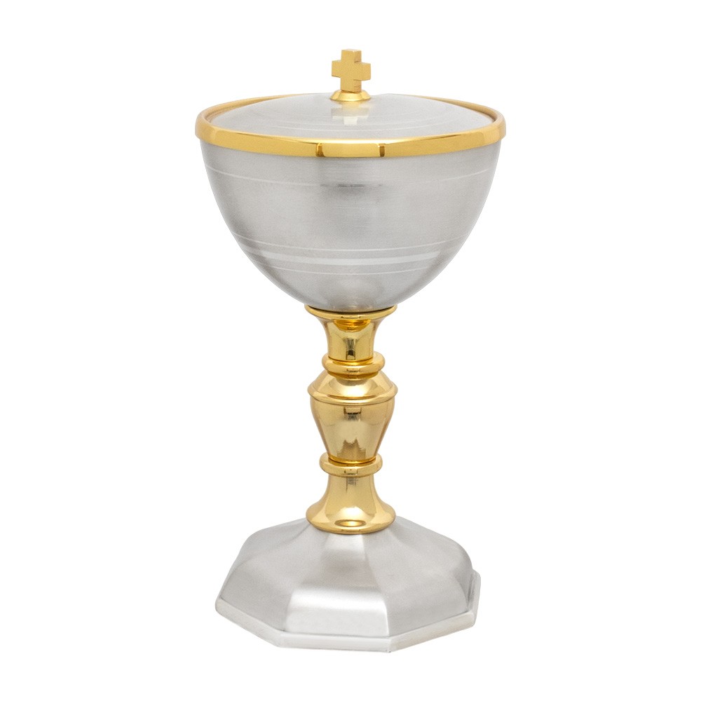 Pisside liturgica realizzata in fusione ottone oro e argento.