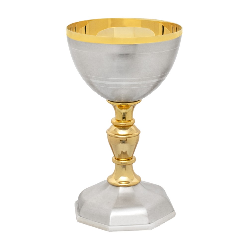 Consegna in 2 settimaneSet liturgico formato da calice e pisside in ottone dorato con nodo semplice.