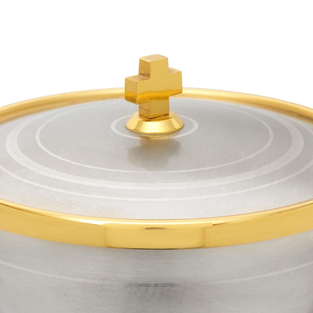 Consegna in 2 settimanePissidina in ottone oro e argento, con base e nodo rigato.