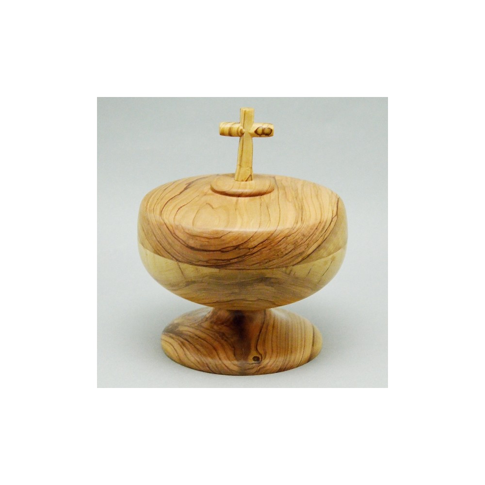 Pisside in legno di Ulivo della terra santa. Le venature del legno possono variare.