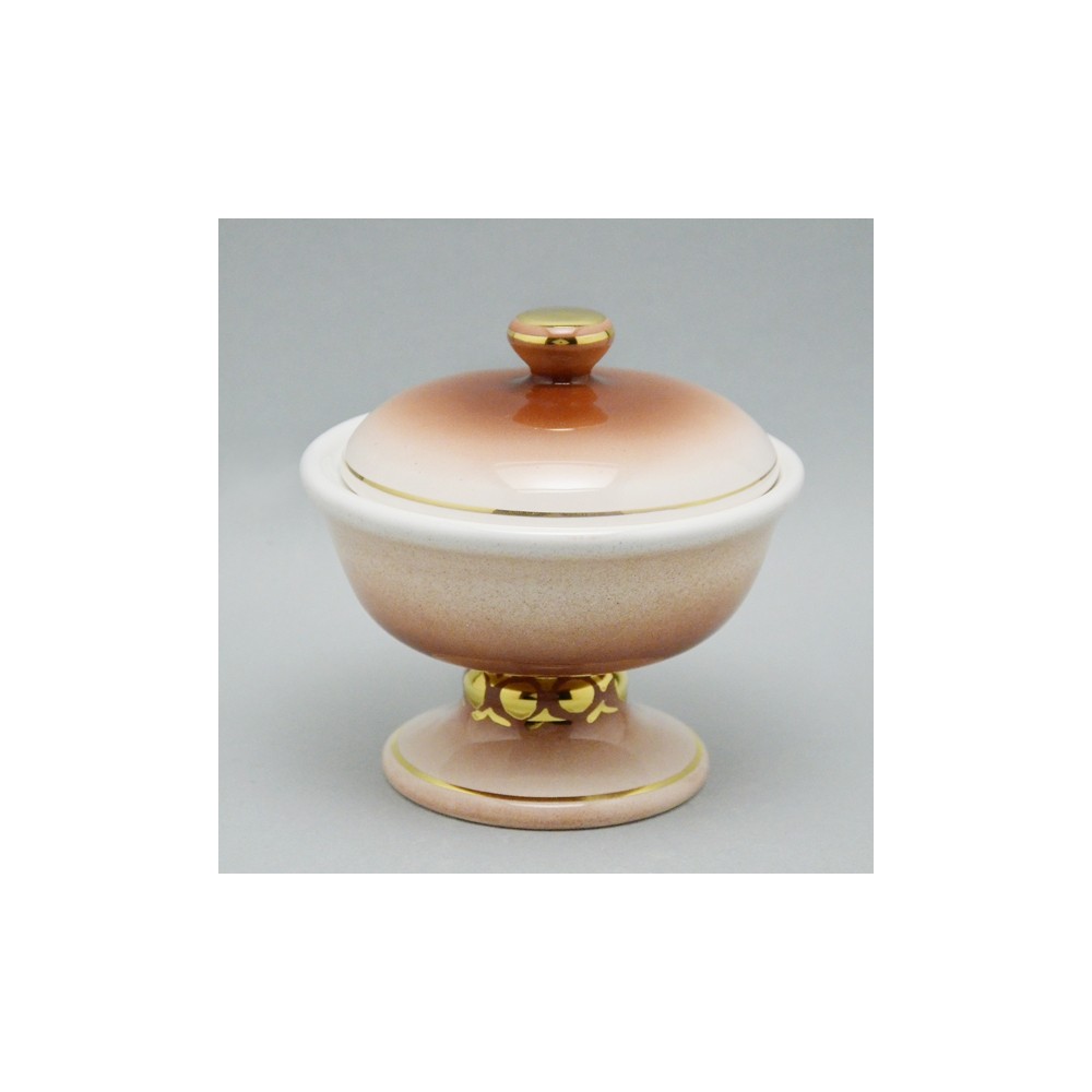 Pisside in ceramica dipinta a mano con decorazioni in oro. Realizzato da un'azienda italiana, tutti le fasi della lavorazione avvengono nel proprio laboratorio con procedimenti artigianali eseguiti rigorosamente a mano. Made in Italy.