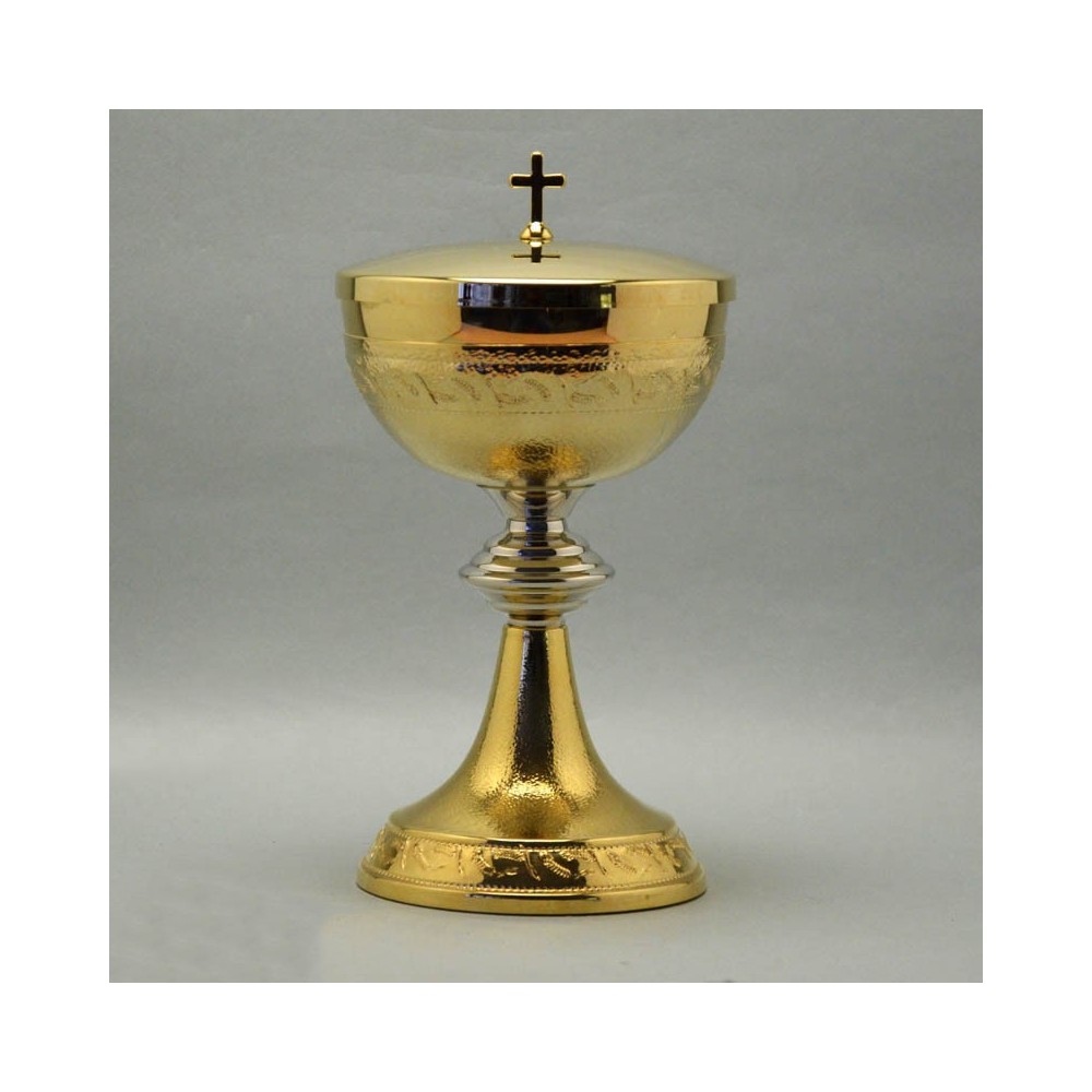 Pisside con lavorazione e simboli di Spighe di grano in ottone dorato. Realizzata da un'azienda italiana garantendo materiali di prima scelta.