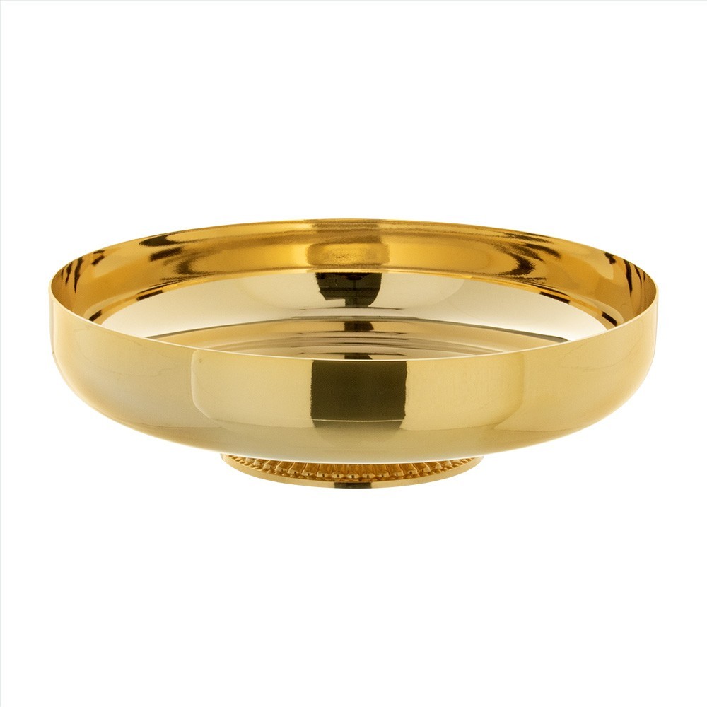 Pisside liturgica bassa realizzata in ottone dorato con doratura 24 carati. Questa pisside per ostie è con base e nodo realizzata con la tecnica della fusione. Il coperchio è dotato di una piccola croce in ottone. Prodotto elegante e raffinato, 100% italiano.