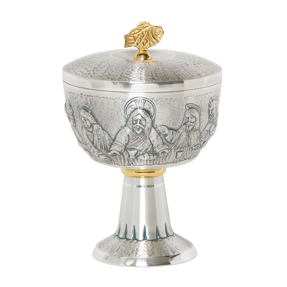 Pisside in ottone bicolore oro e argento, con incisione l'Ultima Cena.