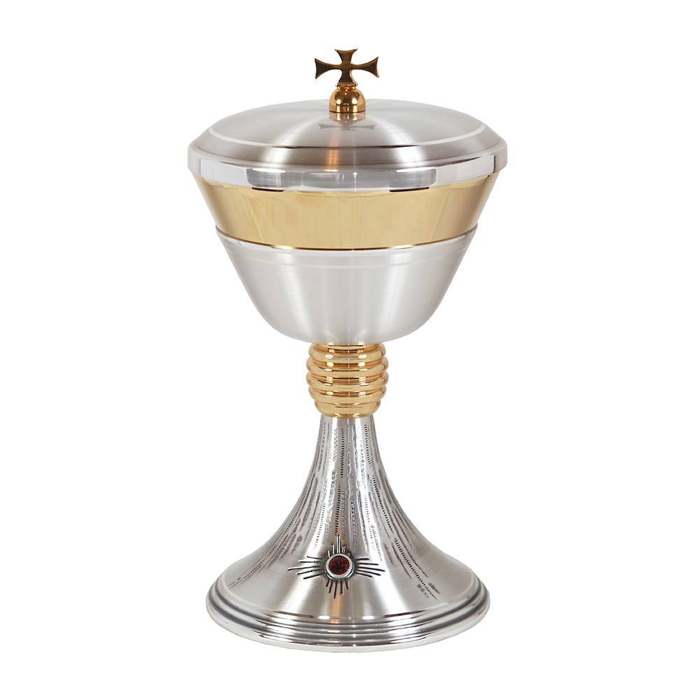 Pisside liturgica in metallo dorata, h 23,5 cm
