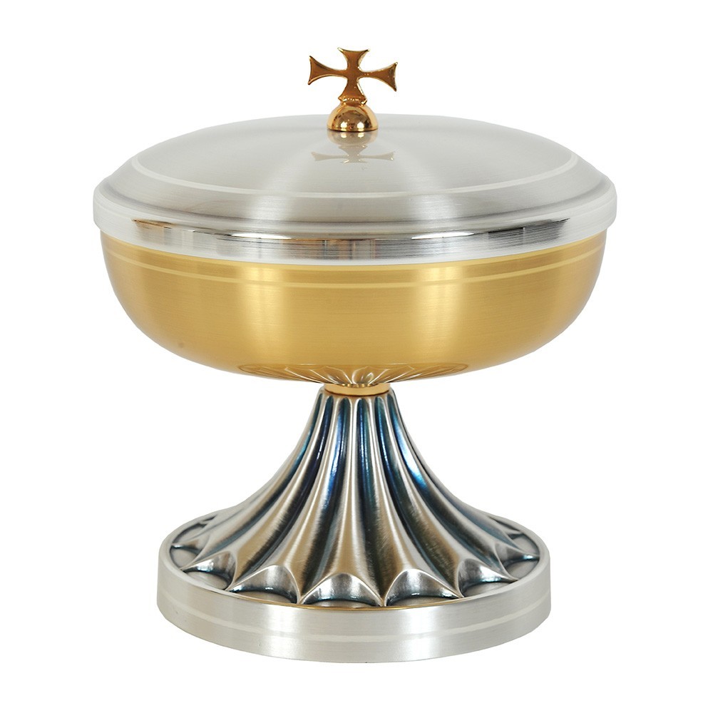 Pisside liturgica a 3 piani in ottone dorato e base tono argento antico.