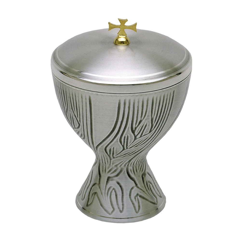 Pisside liturgica prodotta in ottone con finitura argento. Finemente lavorata con spighe di grano. Articolo di ottima qualità, produzione italiana.