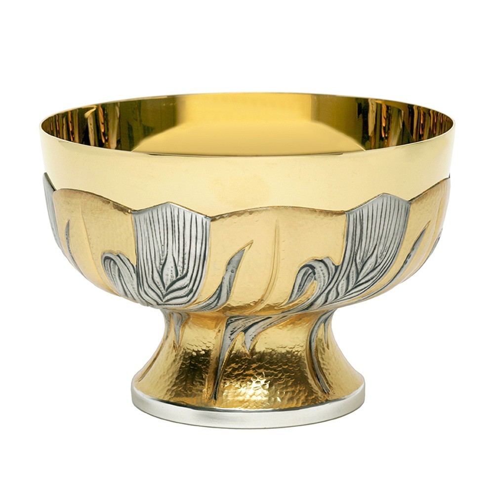 Patena e pisside in ottone bicolore.