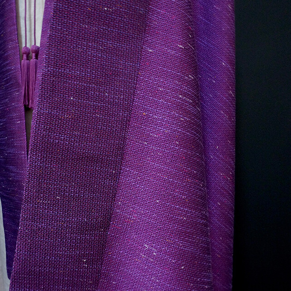 Piviale sacerdotale viola confezionato in leggerissimo tessuto nibo (lino/cotone e viscosa).