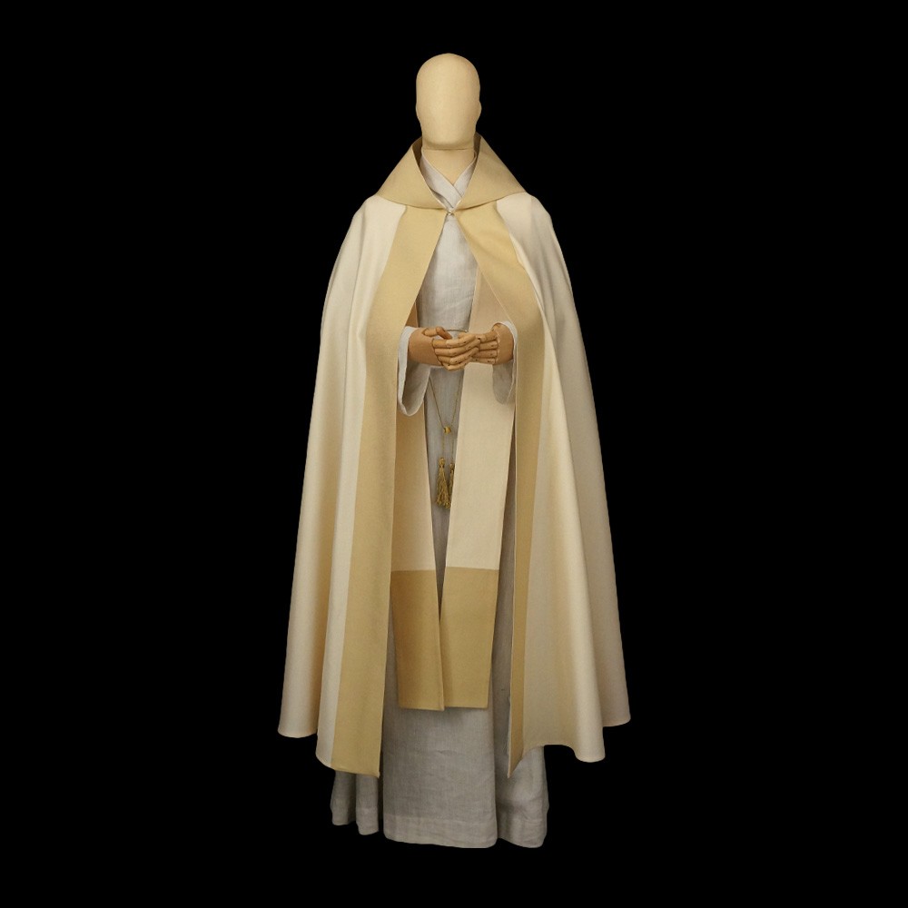 Piviale sacerdotale avorio confezionato in leggerissimo tessuto nibo (lino/cotone e viscosa).