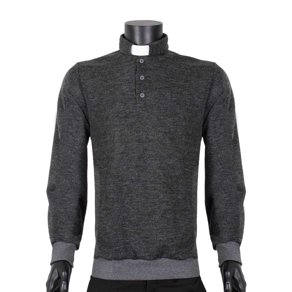 Maglione clergy in tessuto misto lana disponibile nei colori nero, blu, grigio chiaro e grigio scuro.