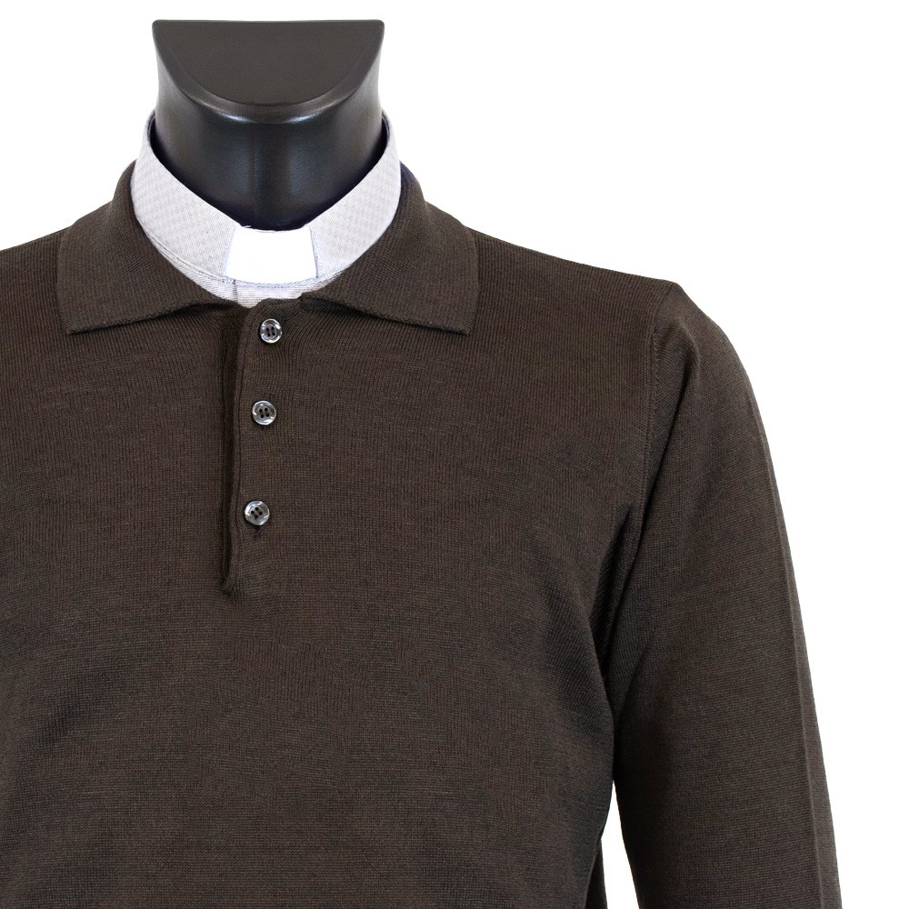 Polo clergyman con bottoni sul fronte realizzata in caldo e leggero tessuto misto 50% lana e 50% dralon.