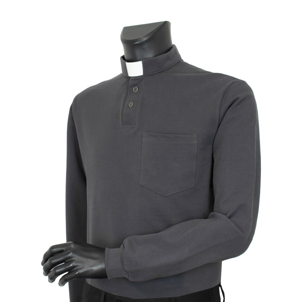 Polo per sacerdote a manica lunga in tessuto piquet.