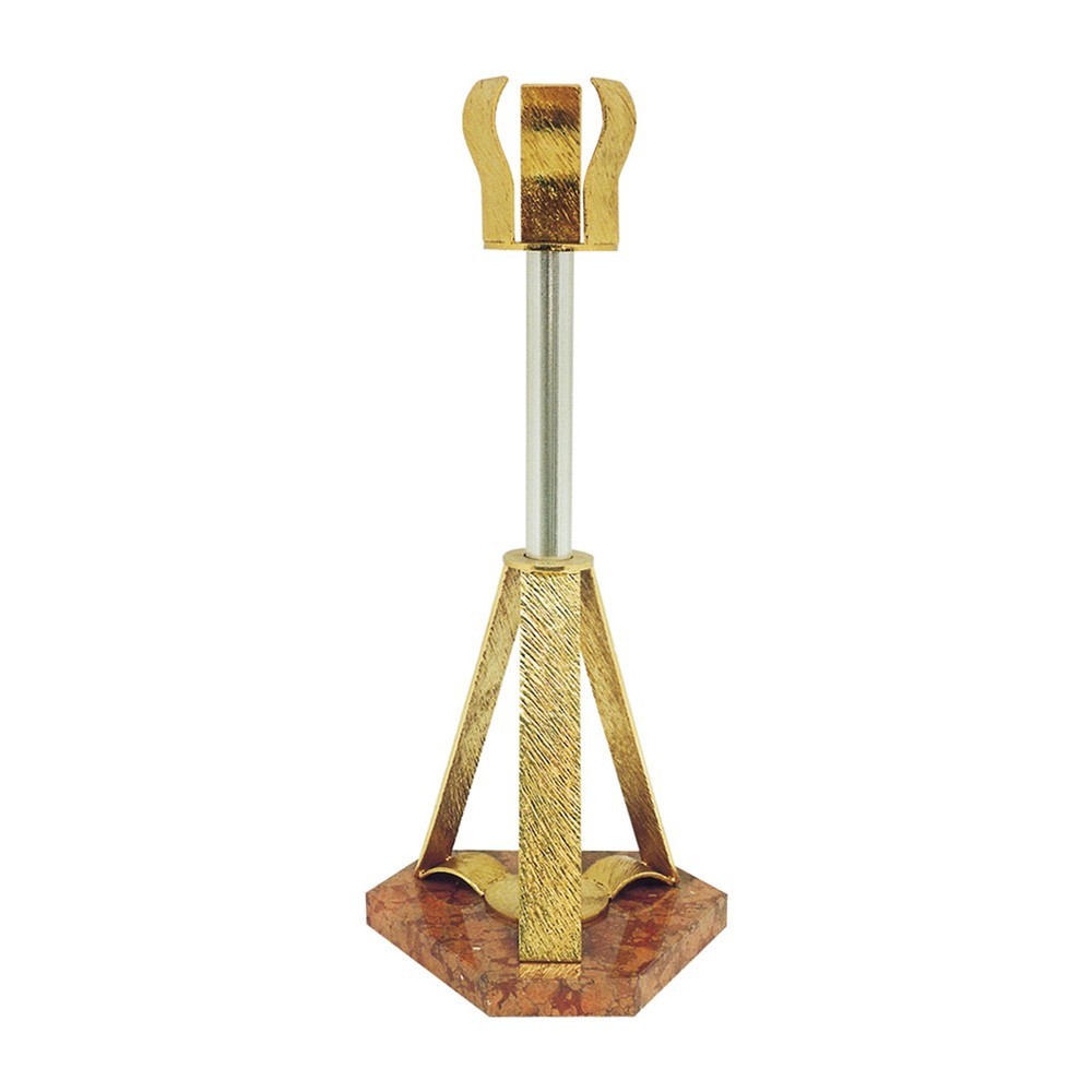 Base portacero in ottone e base in marmo di Verona, h 75 cm.