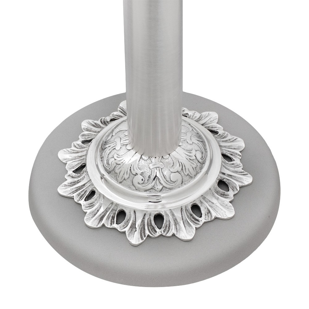 Questa base è interamente in ottone con finitura argento e base in metallo.
