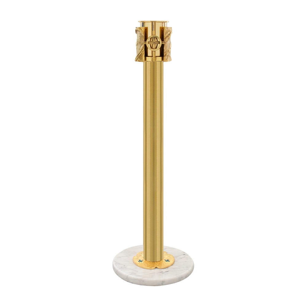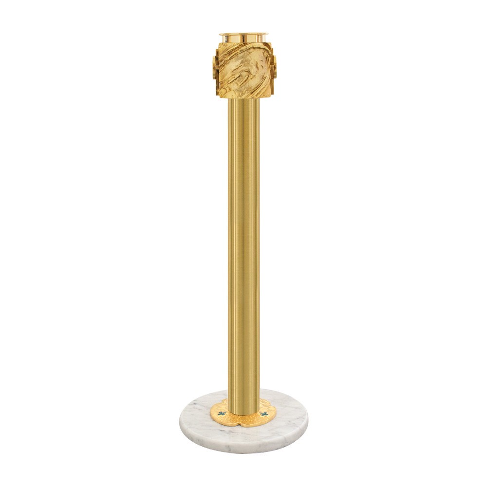 La colonna è interamente in ottone dorato, con decori in fusione sulla parte superiore e inferiore. La base è circolare ed è in marmo.