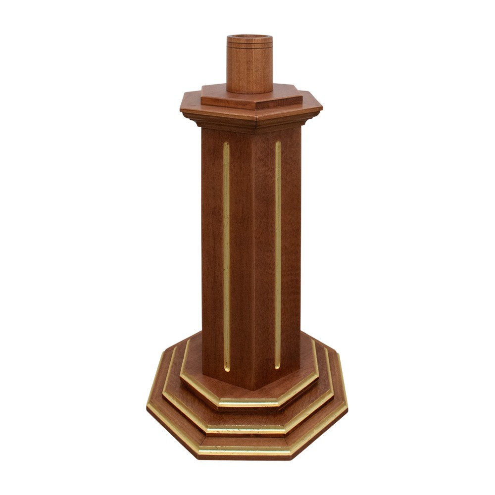 Portacero in legno artigianale di ottima qualità con base ottagonale e bossolo con diametro 8 cm.