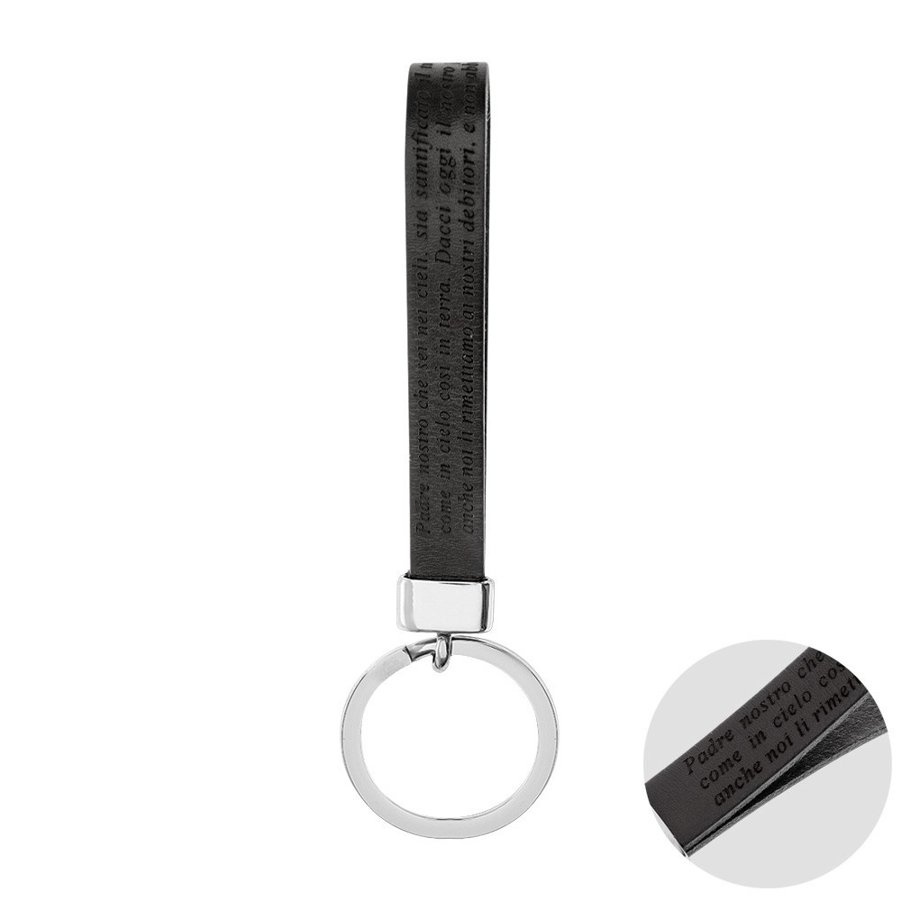 Portachiavi in vera pelle naturale con preghiera incisa del Padre Nostro, collezione AMEN.