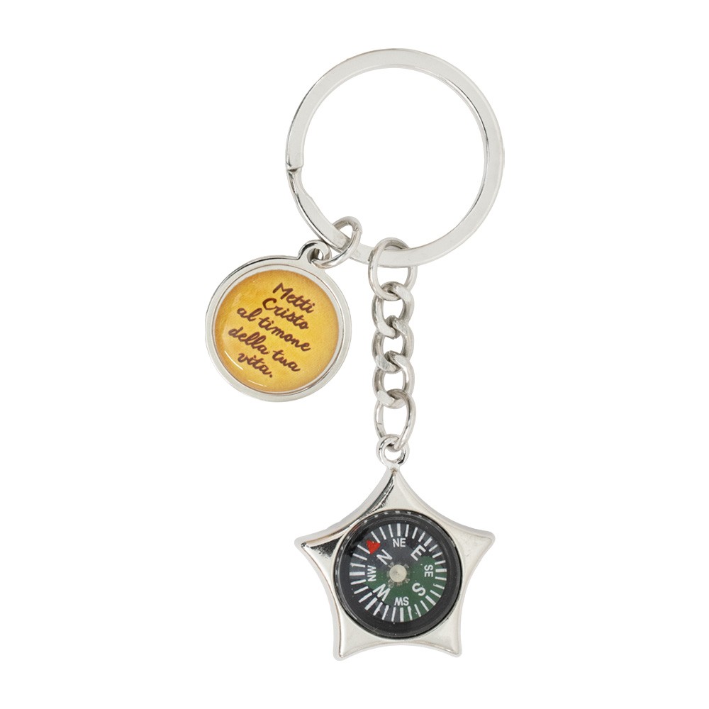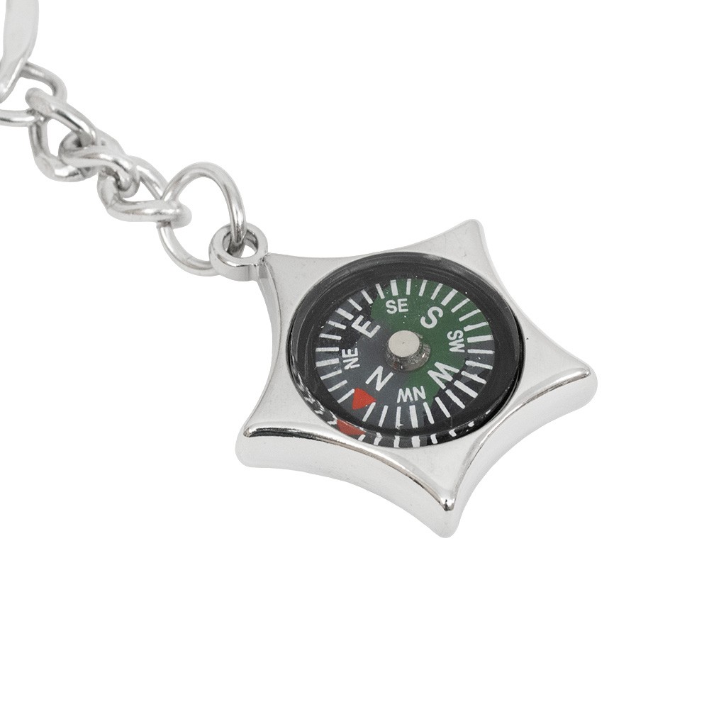 Portachiavi Bussola con immagine smaltata e ciondolo.