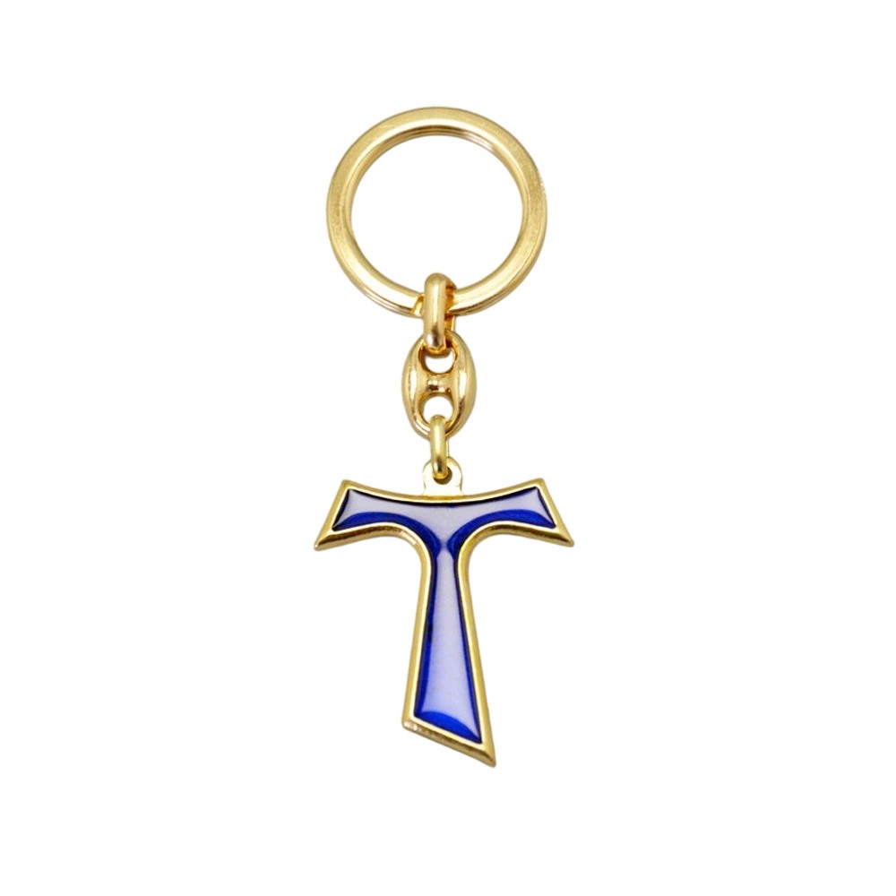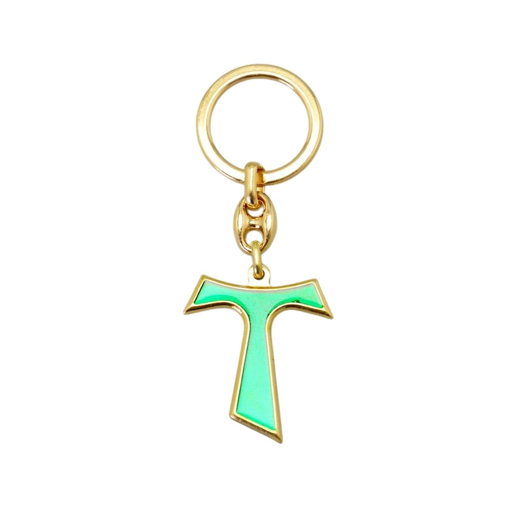 Realizzato a forma di tau in metallo dorato con fondo smaltato colorato. Prodotto made in Italy.