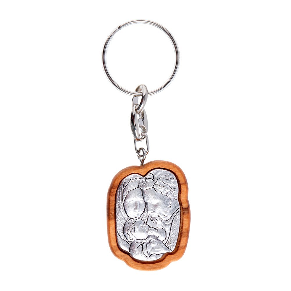 Portachiavi in legno d'ulivo con placca Sacra Famiglia.
