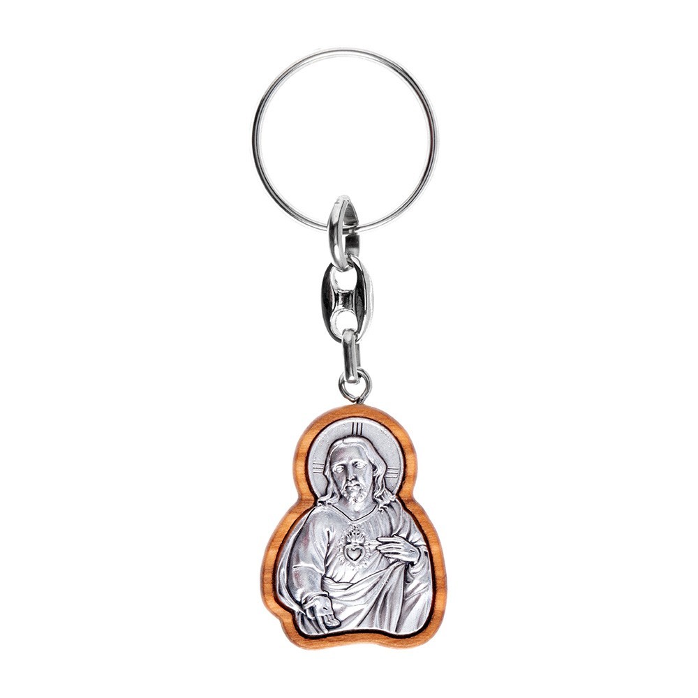 Portachiavi Sacro Cuore di Gesù in legno d' ulivo.