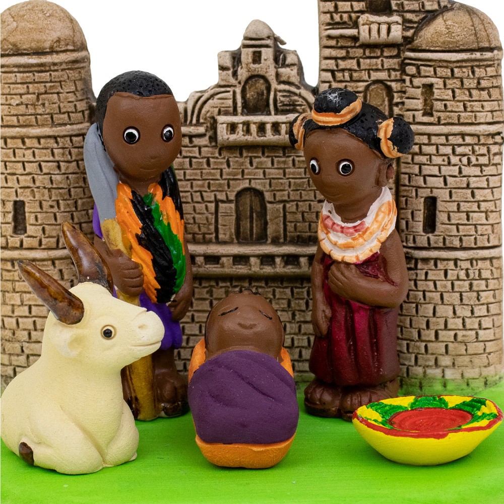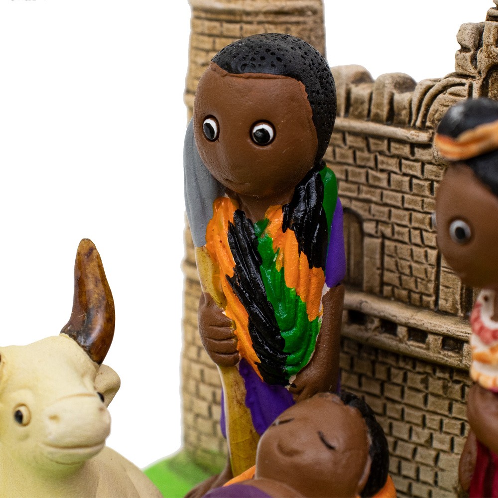 Presepe etnico in ceramica semismaltata con raffigurazione dell'Etiopia per la collezione Kenty.