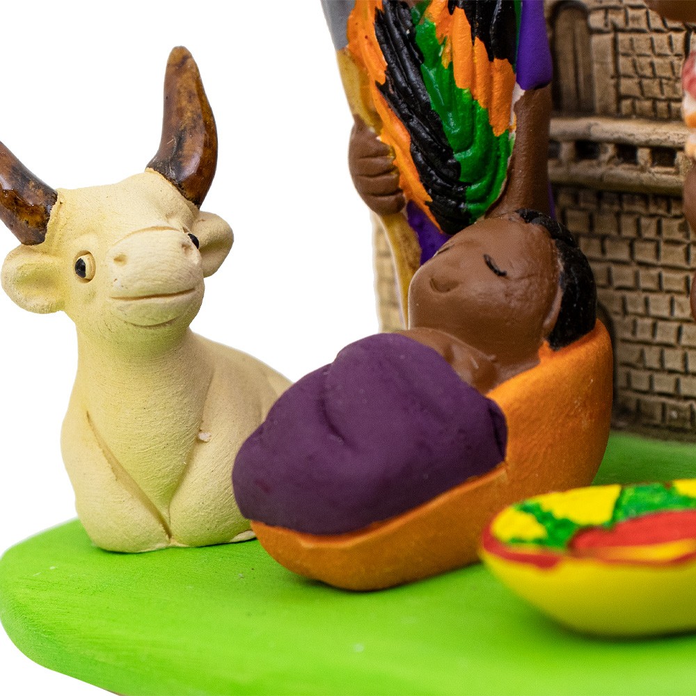 Presepe peruviano in ceramica semismaltata, lavorato e dipinto a mano.