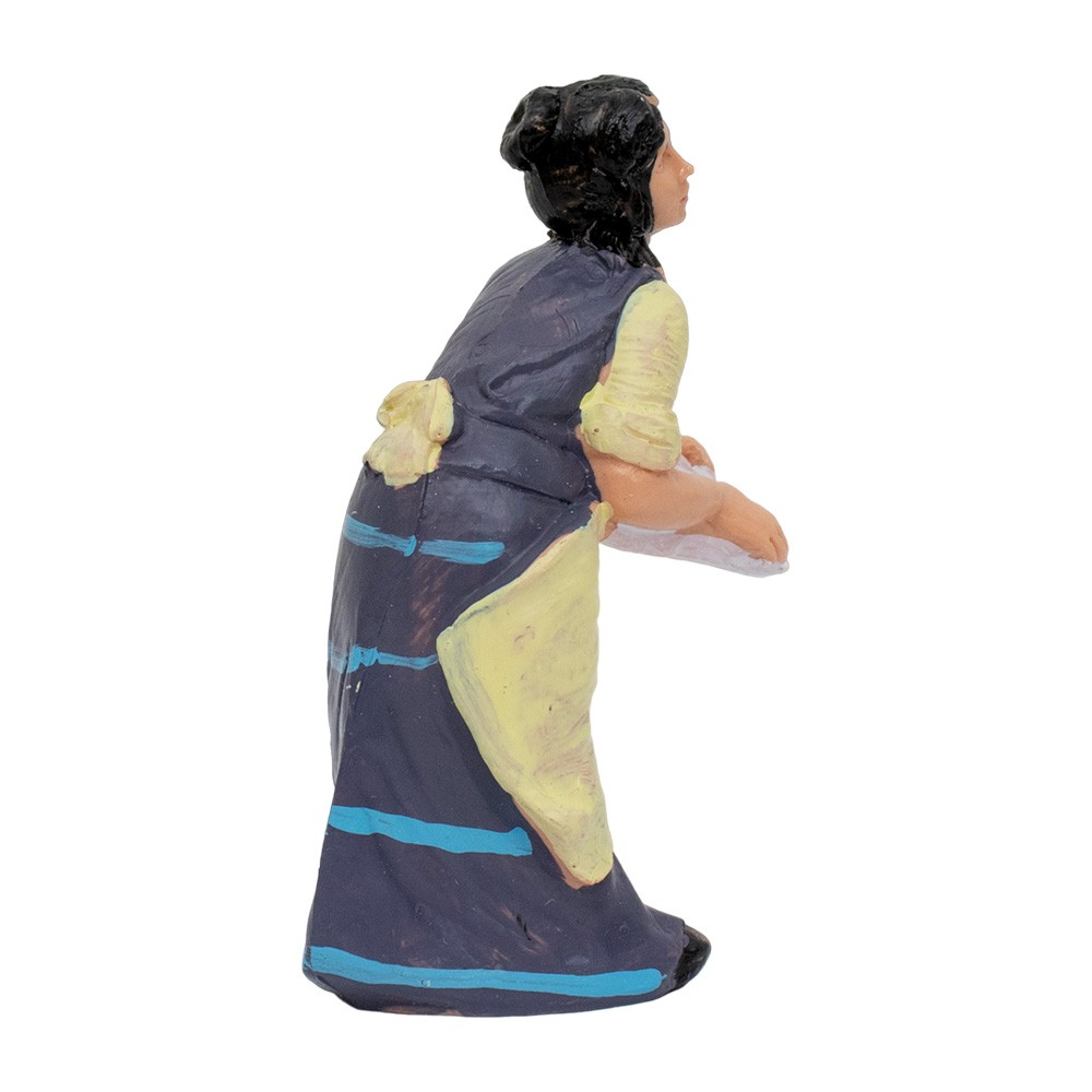 Pastorella lavandaia decorata e dipinta a mano, adatto per il presepe Euromarchi con altezza massima 10 cm.