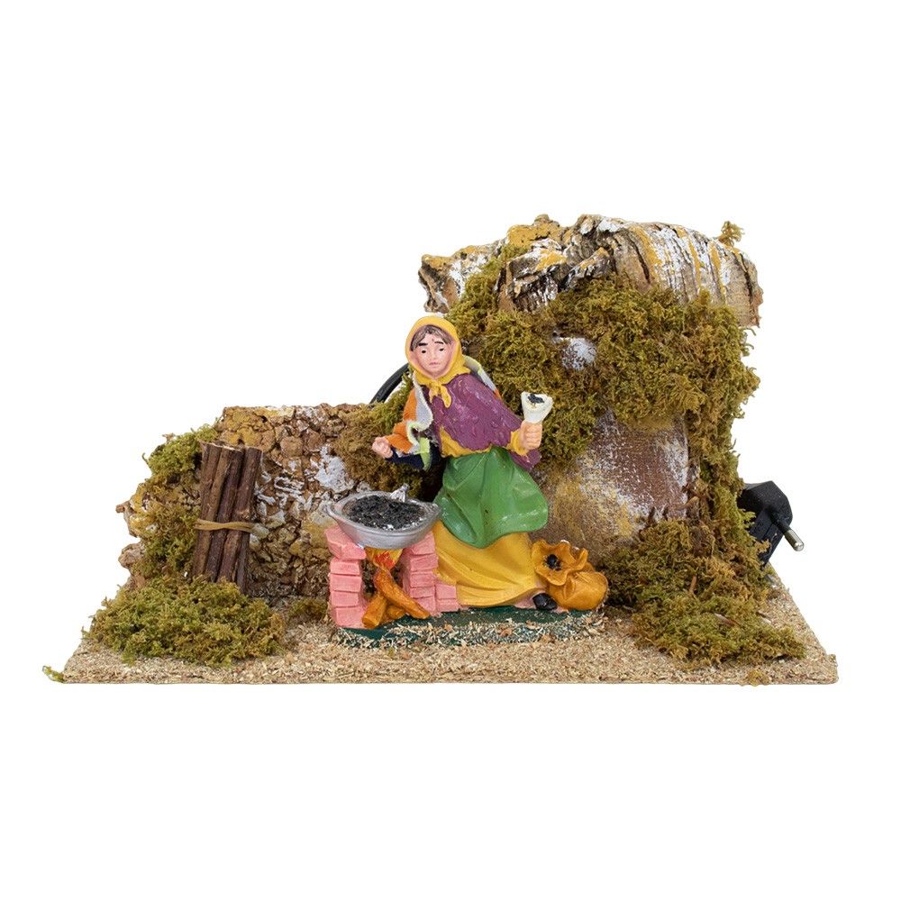 Donna venditrice di caldarroste per movimento presepe, dimensioni 25x15x h 16 cm.